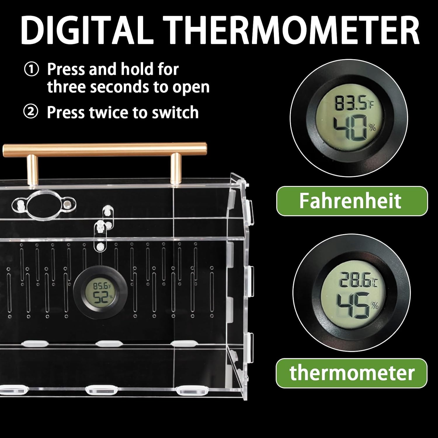 • Premium Acrylic Enclosure – Crafted from high-transparency, durable acrylic, this reptile terrarium offers a secure and visually appealing habitat for tarantulas, jumping spiders, frogs, and small reptiles. Resistant to scratches and easy to clean.
