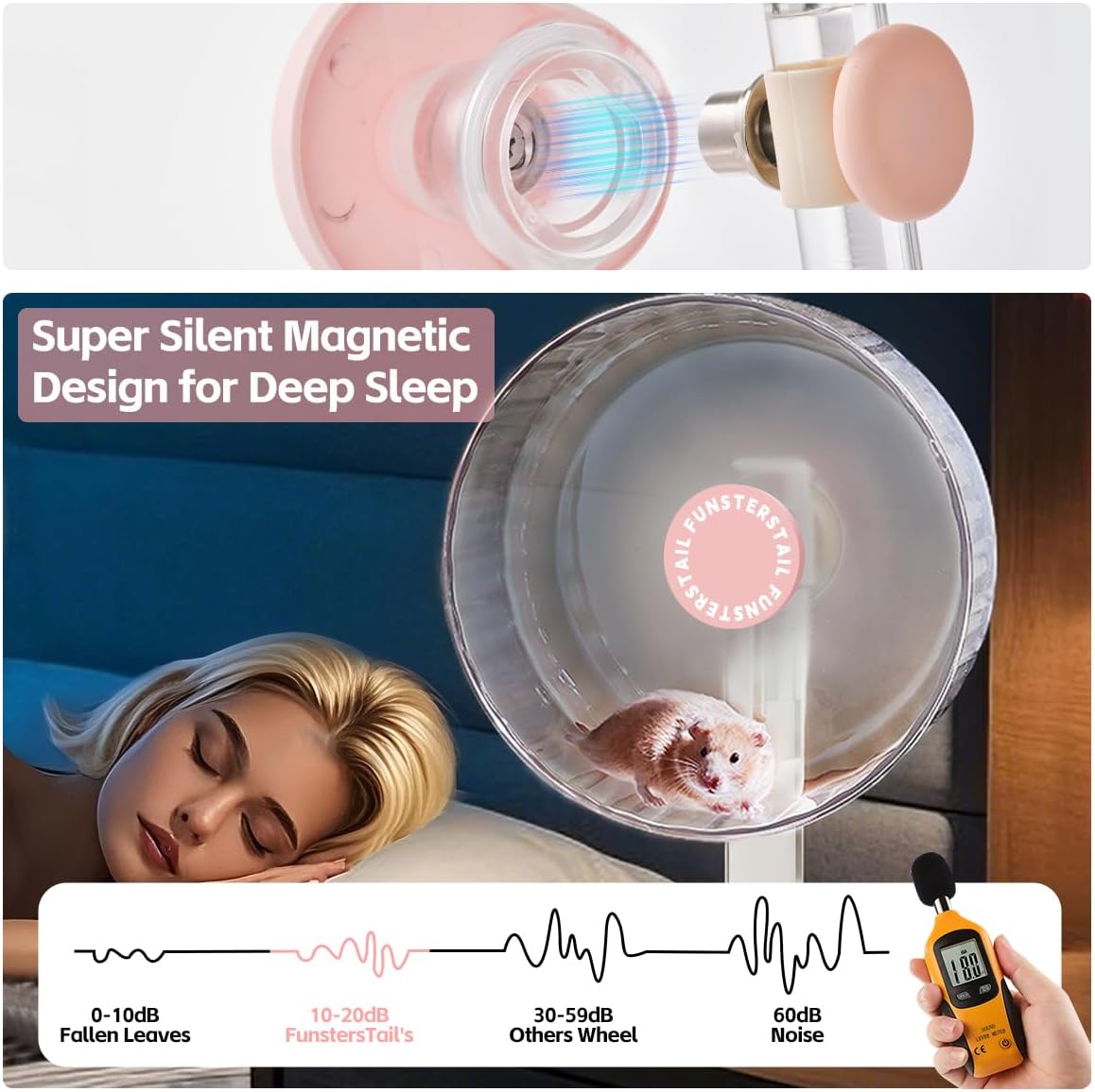 • Super Silent Night Runs: Our magnetic axle design eliminates friction noise, making it ideal for late-night use. Perfect for light-sleeping owners or cage setupsโ€”your dwarf hamster or hedgehog can run freely without disturbing your sleep