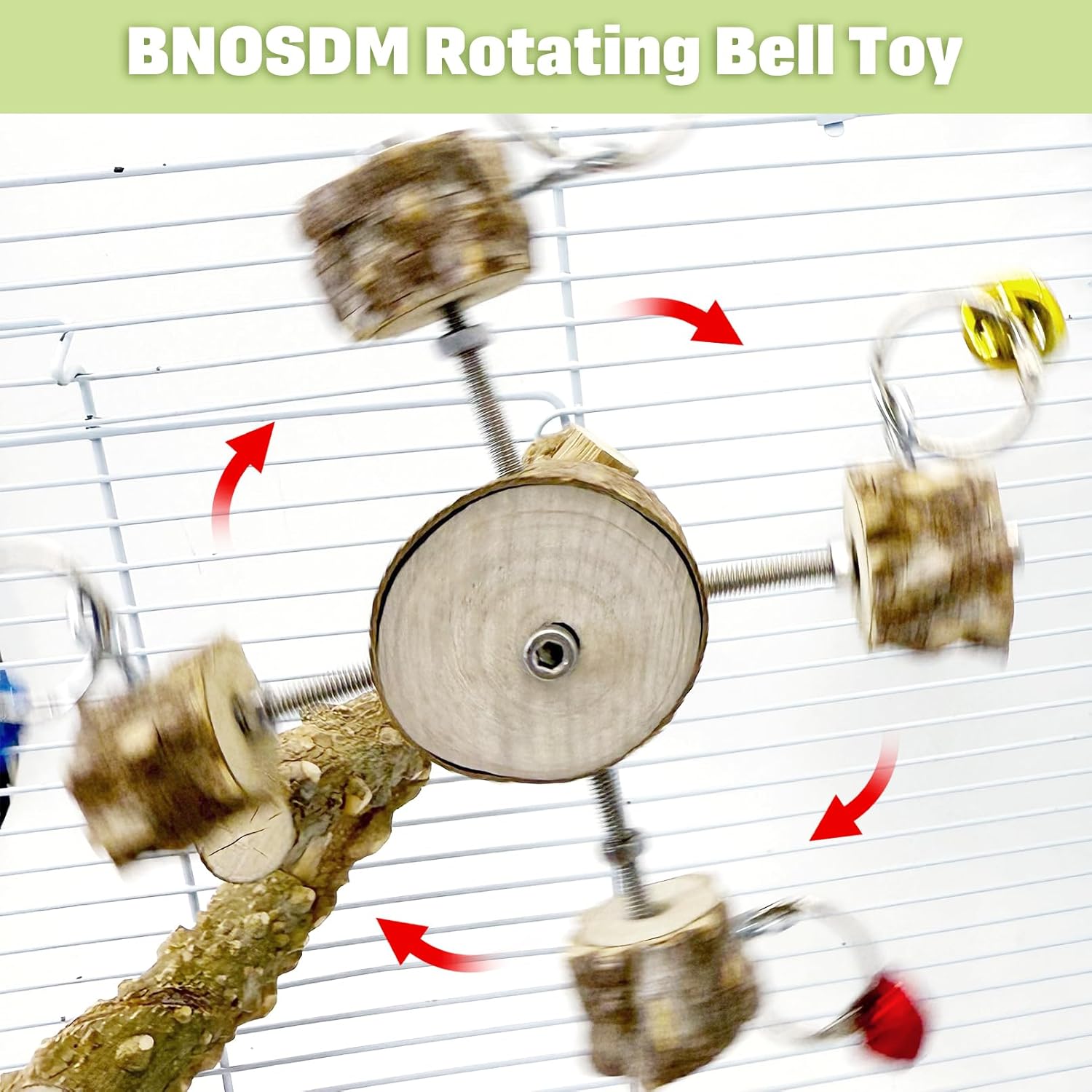 BNOSDM Natural Wood Bird Ladder Perch with Rotating Bell Toys-Exercise Stands for Parrot Climbing Chewing Parakeet Bridge Cage Accessories for Cockatiel, Conures, Lovebirds, Budgie
