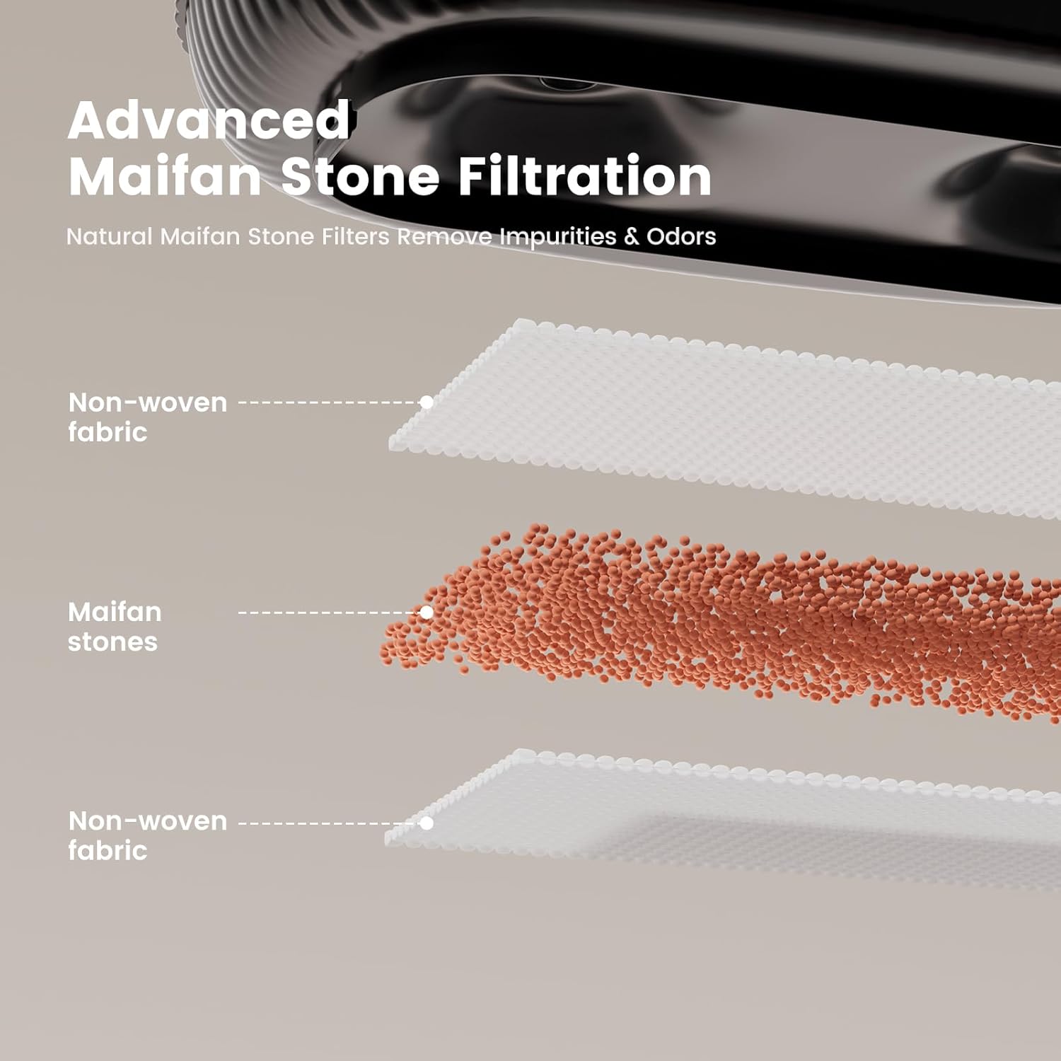 • 3-Layer Maifan Stone Filtration & UV — Non-woven fabric + natural maifan stone + non-woven fabric trap hair, dust, and impurities. and the Water Pump Built-in UV to keep the water hygienic. Includes 2 replacement filters(and thanks so much for our dear customer message. our filter products will be available for sale in as soon as two months).