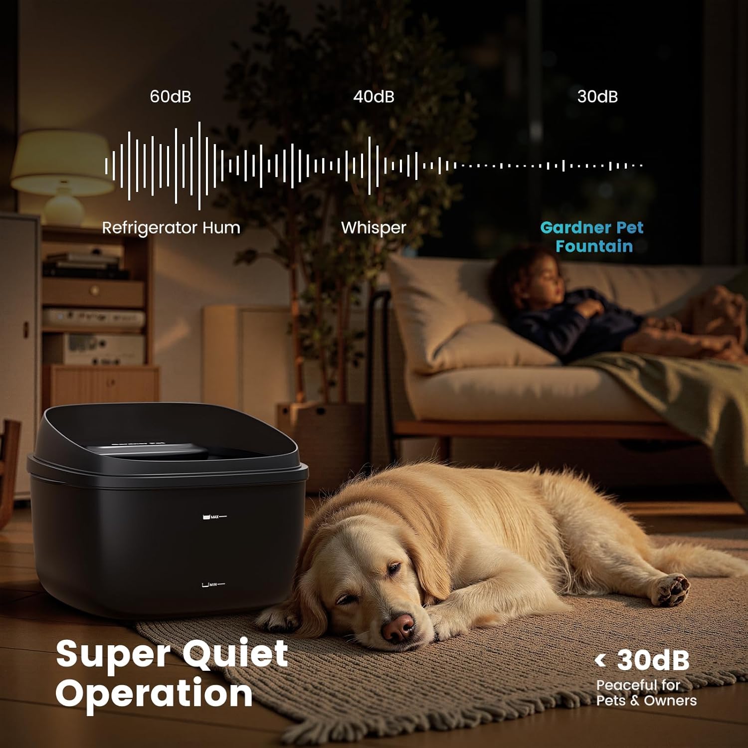 • Ultra-Quiet Operation (<30dB) — Silent pump won’t disturb pets or light sleepers. Perfect for bedrooms, offices, or night-time use
