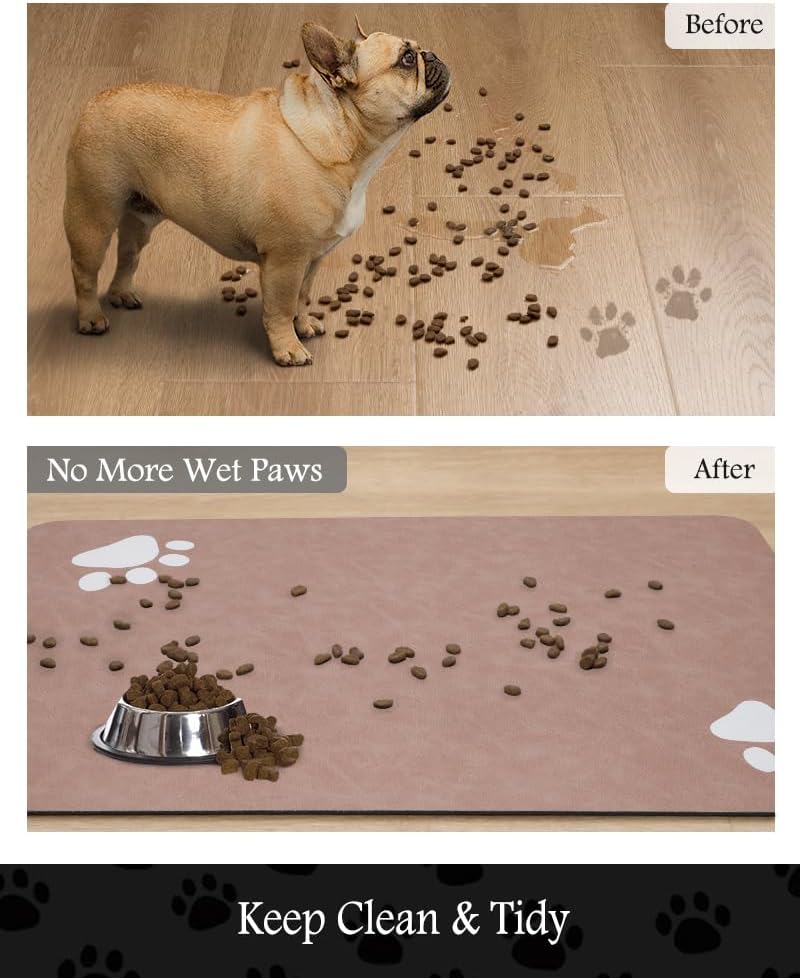 • Super Absorbent & Durable: Perfect pet supplies.This pet food mat can prevent liquid from overflowing. Super absorbent and quick-drying ability to avoid wetting pet paws even for messy drinkers. Sturdy dog & cat food bowl mat cannot be torn easily and avoid eating by mistake. Keep the pet's eating environment tidy and clean.