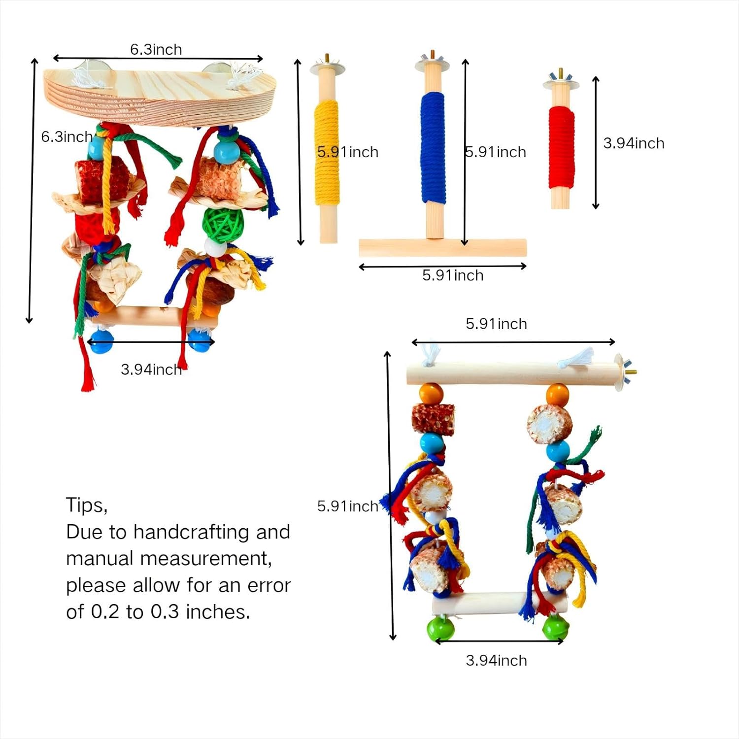 • 【Perfect for Small Birds】Designed for budgies, parakeets, cockatiels, and other small to medium birds, these Bird Perches offer a comfortable resting spot and playful activities. The bird cage hanging toy encourages movement, while the chew toys help maintain beak health. Suitable for both cage and free-standing use, keeping your pet active and engaged.