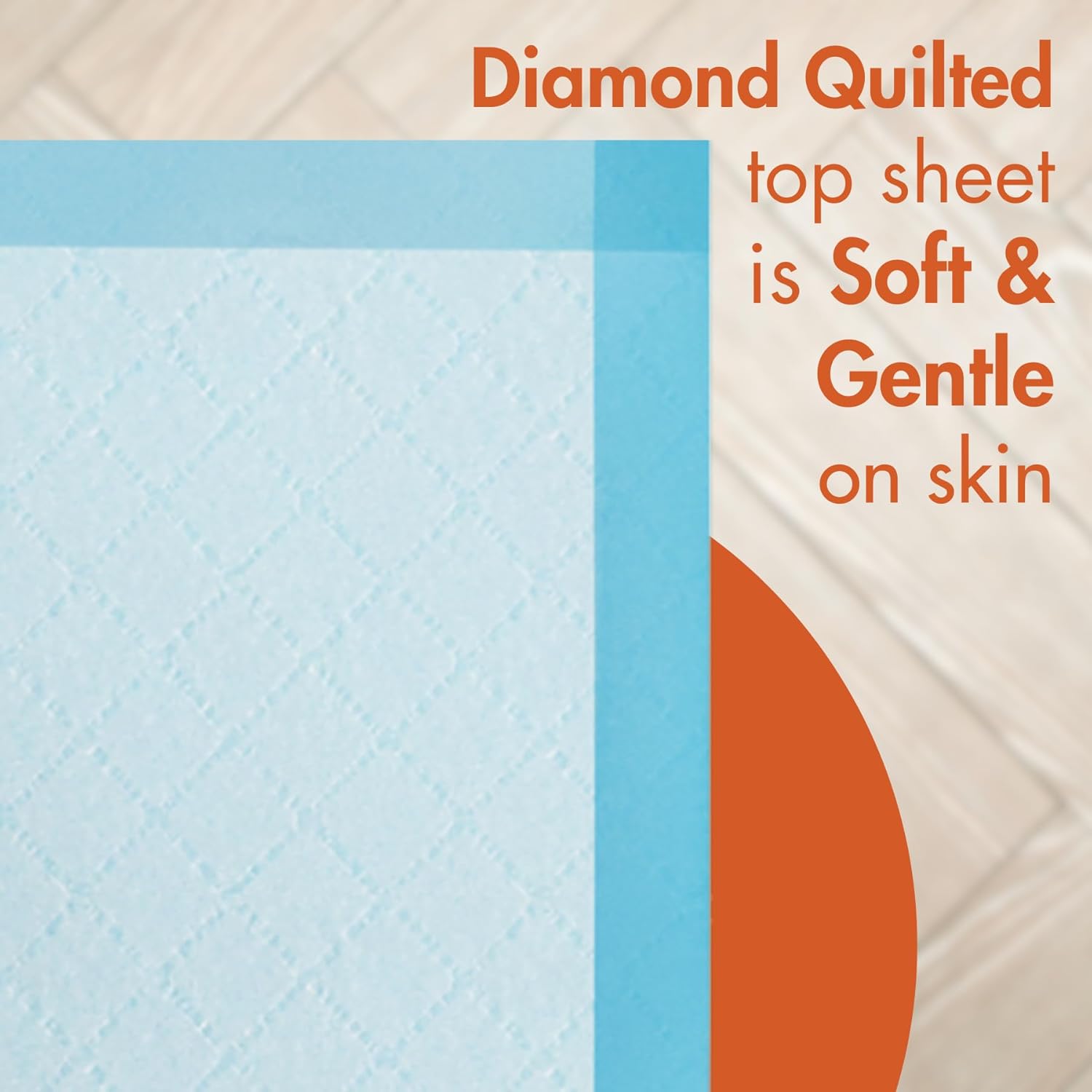 • Gentle diamond-quilted top sheet keeps skin dry and comfortable during use, suitable for incontinence care, pet training, and baby changing needs
