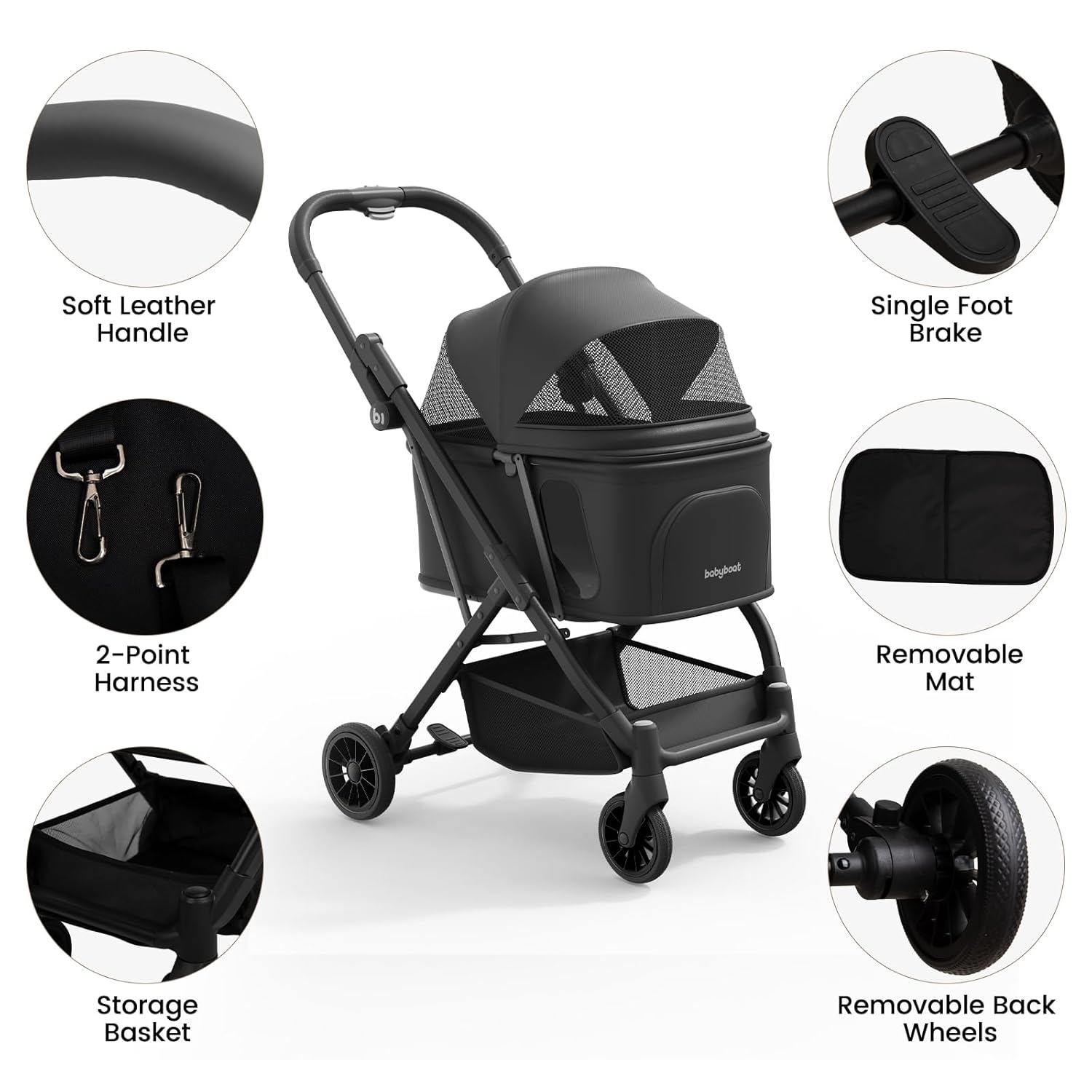 • Premium Materials: Babyboat Lightweight Dog Stroller is made of thickened and sturdy carbon steel support frame, provides driving safety for your pet, makes the stroller enough steady and durable. The wider leather-wrapped handle offers a more comfortable grip, while the high-quality pet cabin materials provide a cozy space your furry friend will love.