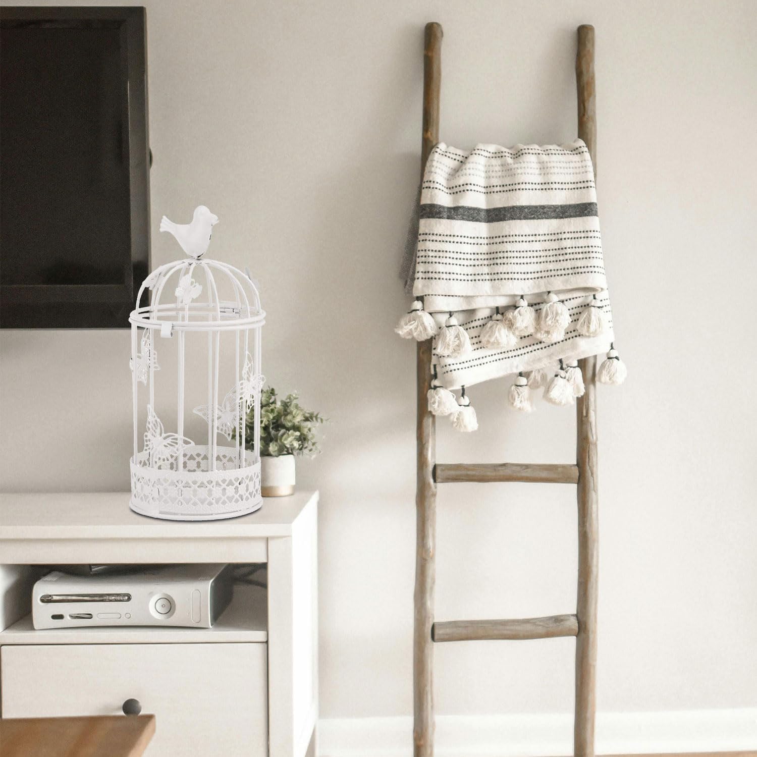 • Whimsical Birdcage Design: This off-white birdcage decor features a bird-shaped handle at the top, while the cage body is adorned with intricate butterfly cutouts. Skillfully blending vintage charm with exquisite craftsmanship, it stands as a delicate decorative piece that embodies both retro allure and artisanal ingenuity.