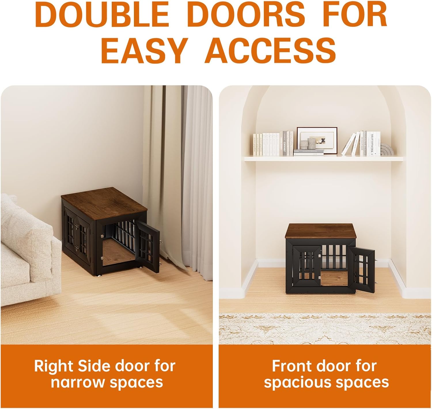 • 【Double Doors Design】The dog kennel furniture has a front door and a side door, your pet will go in and out easily with double doors. The double-doors design can adapt to more different space environments. You can decide whether to open the front door or the side door according to your needs.