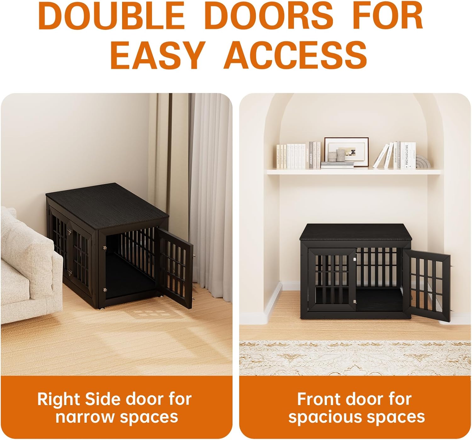 • 【Double Doors Design】The dog kennel furniture has a front door and a side door, your pet will go in and out easily with double doors. The double-doors design can adapt to more different space environments. You can decide whether to open the front door or the side door according to your needs.