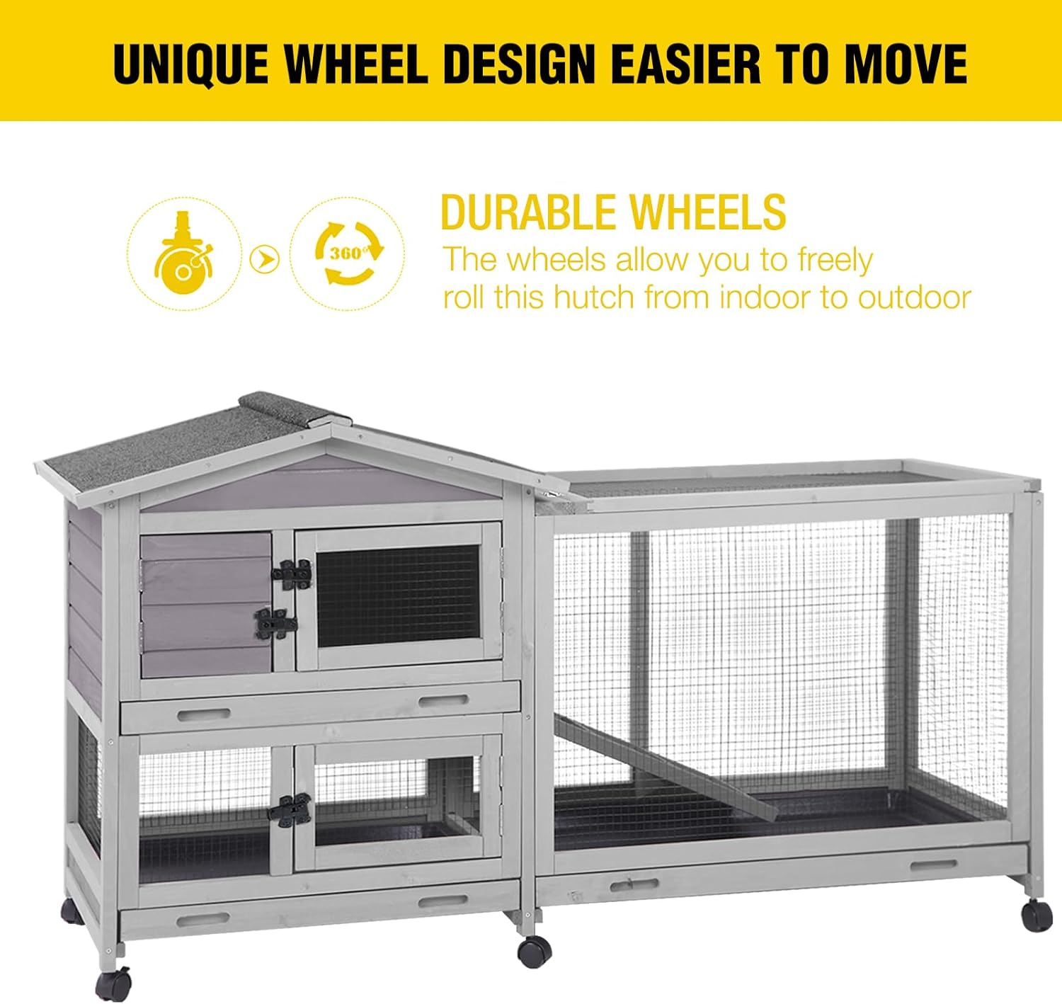 Aivituvin Rabbit Hutch Outdoor Rabbit Cage Indoor with Casters Bunny Cage Chikcen Coop for Small Animals with Pull-Out Tray(Grey)