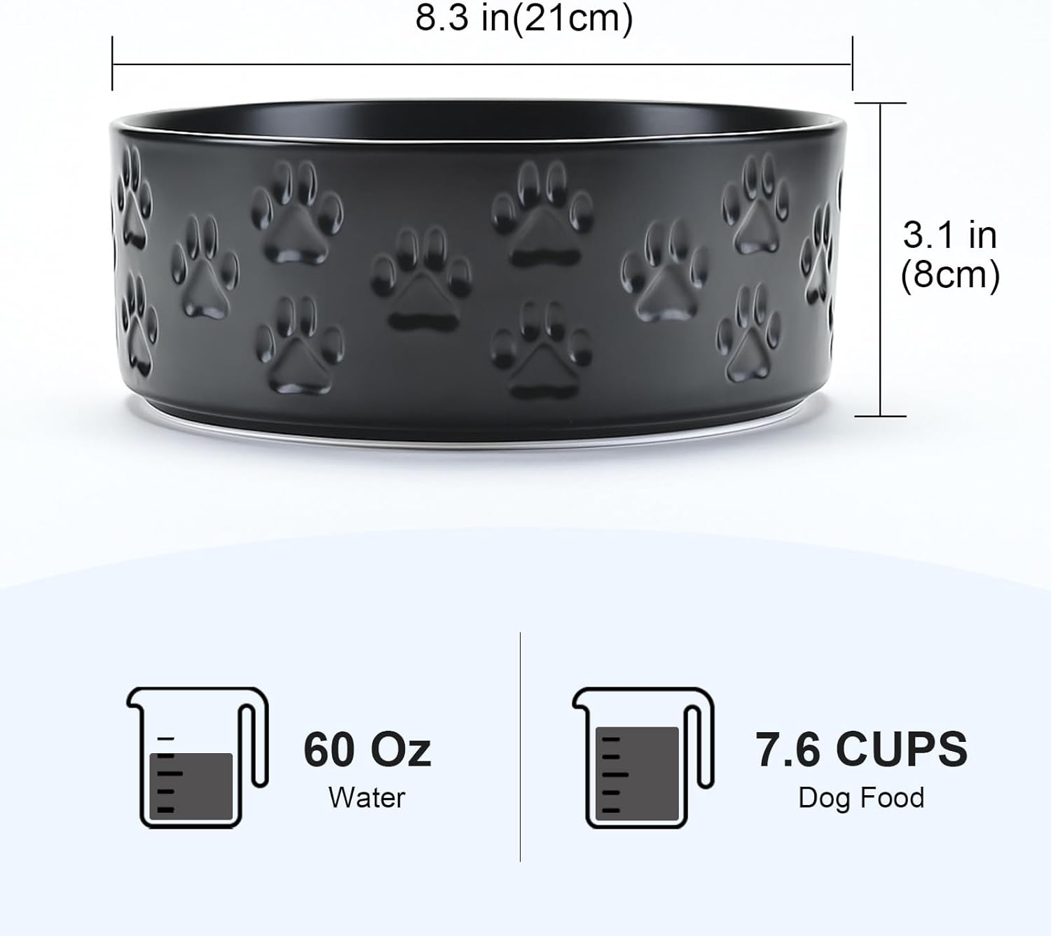 • Lead-Free Ceramic Pet Bowls - 8.3" Ceramic Dog Bowls with 60 OZ Capacity Fired at high temperature with a food‑grade glaze that contains zero lead or cadmium, these non‑porous bowls help keep meals tasting fresh, rinse clean in seconds, and both MICROWAVE SAFE and DISHWASHER SAFE
