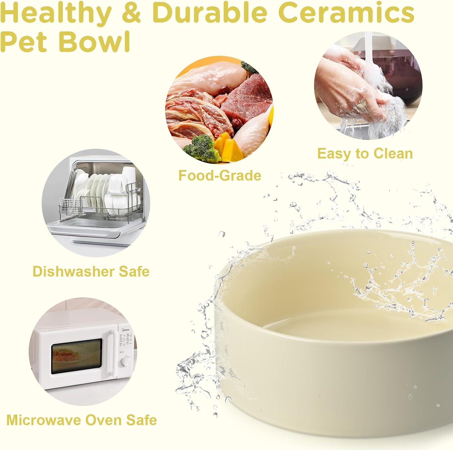 • Lead-Free Ceramic Pet Bowls - 8.3" Ceramic Dog Bowls with 60 OZ Capacity Fired at high temperature with a food‑grade glaze that contains zero lead or cadmium, these non‑porous bowls help keep meals tasting fresh, rinse clean in seconds, and both MICROWAVE SAFE and DISHWASHER SAFE