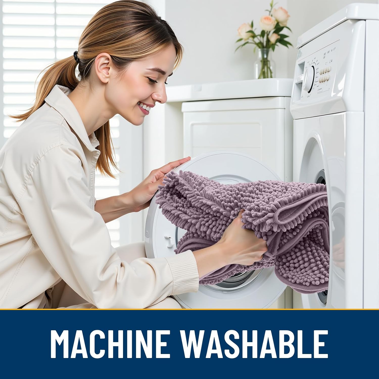 Smiry Dog Door Mat for Muddy Paws 30x20, Absorbs Moisture and Dirt Doormat, Non-Slip Washable Quick Dry Chenille Front Door Mat Indoor Entrance, Entryway Carpet for Inside Floor, Deep Plum