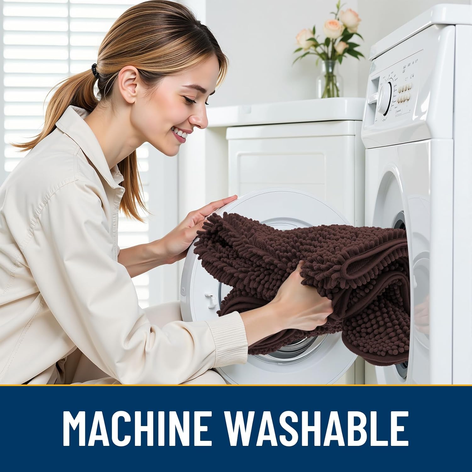 Smiry Dog Door Mat for Muddy Paws 48x30, Absorbs Moisture and Dirt Doormat, Non-Slip Washable Quick Dry Chenille Front Door Mat Indoor Entrance, Entryway Carpet for Inside Floor, Brown