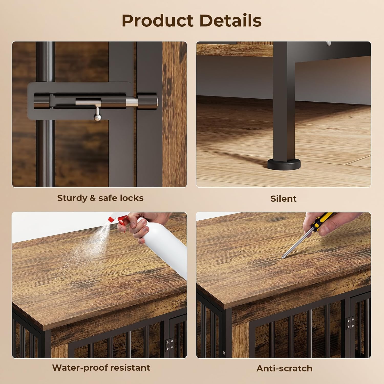 • Heavy-Duty and Chew-Resistant: Constructed with thick 0.5" engineered wood panels and sturdy steel bars, this durable dog crate stands up to active pets. Reinforced bottom support bars and premium materials provide excellent stability, load-bearing capacity, and bite resistance
