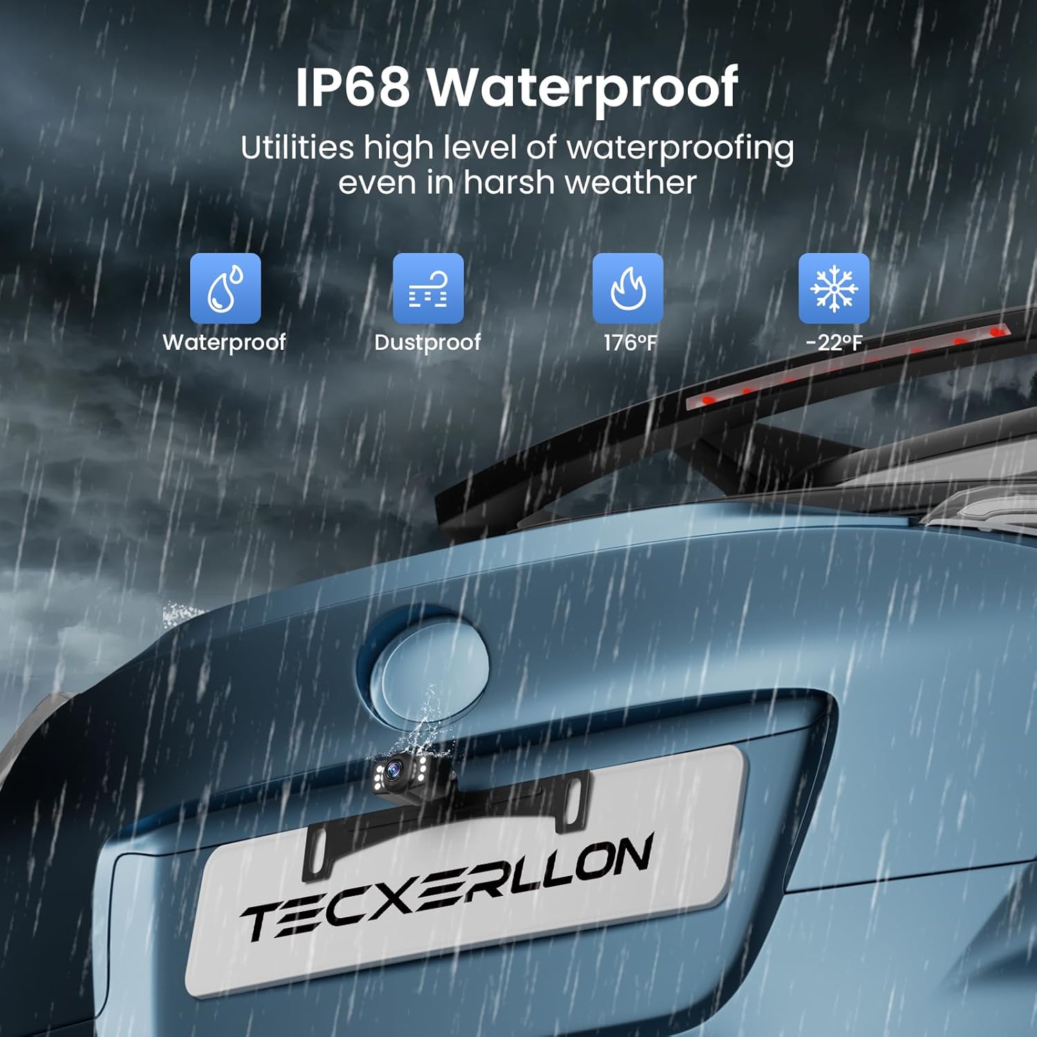 • IP68 Weatherproof Durability: Built tough for all seasons! Our IP68 waterproof wired backup camera withstands heavy rain, snow, and dust. Trust it to deliver a stable image for your sedan or truck—year after year.