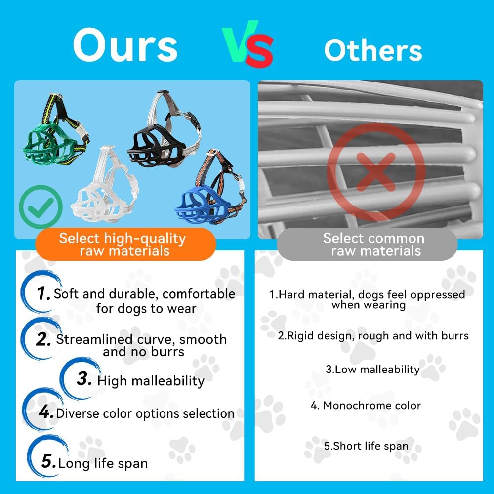 • HELP YOUR DOG ADAPT TO THE MUZZLE:If your dog resists even after selecting the correct size, please watch our training video. Using treats with the muzzle will help build positive associations, making it easier and more comfortable for your dog to accept the muzzle.