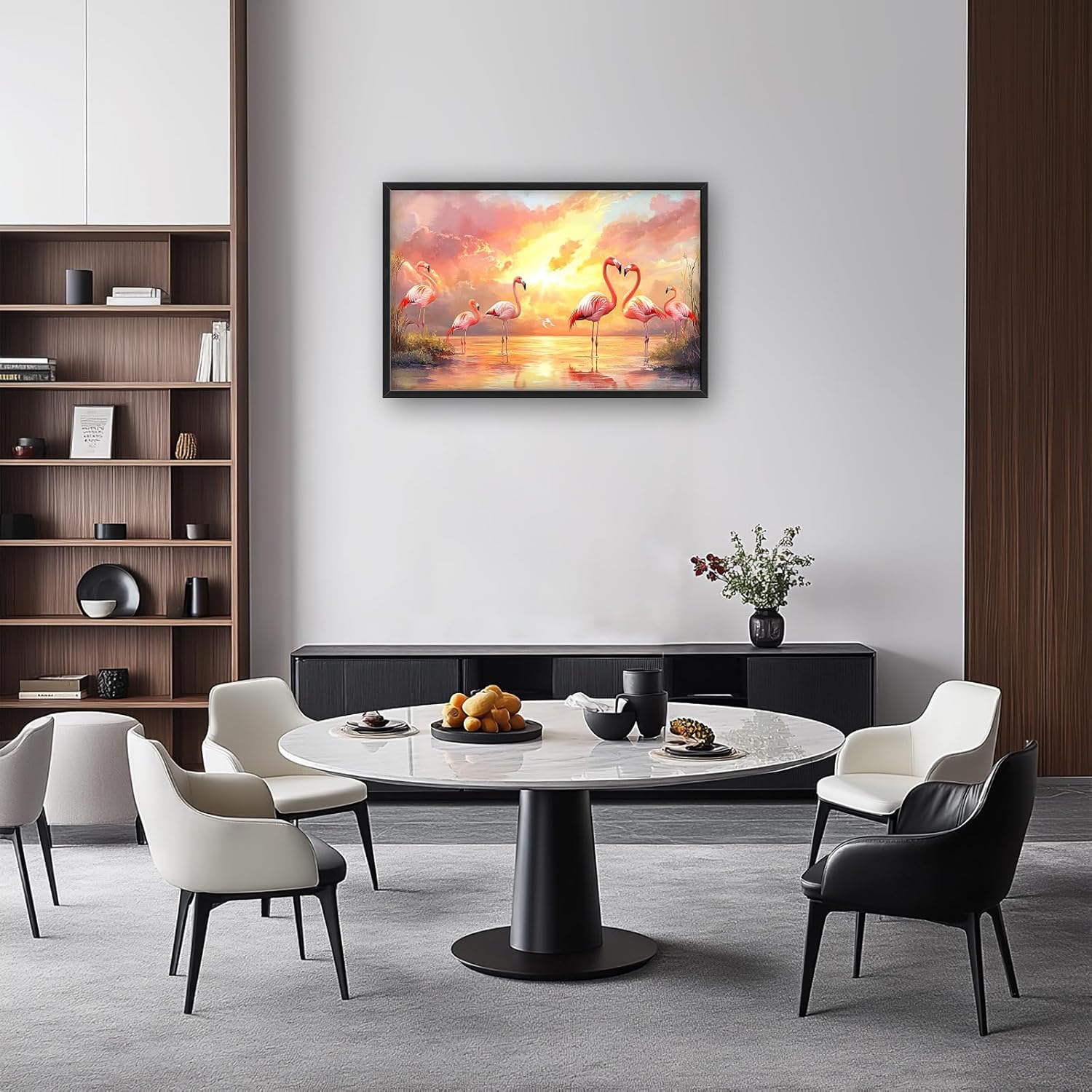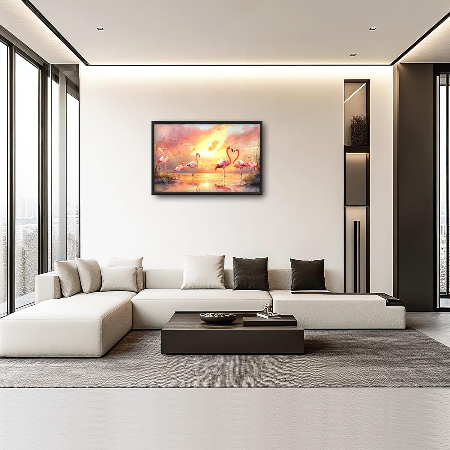 Large Flamingo Wall Art for Living Room, Framed Oversized Sunset Lake Wall Decor Landscape Canvas Painting Pictures Modern Artwork for Living Room Bathroom Bedroom Office Dining Room 36"x24"