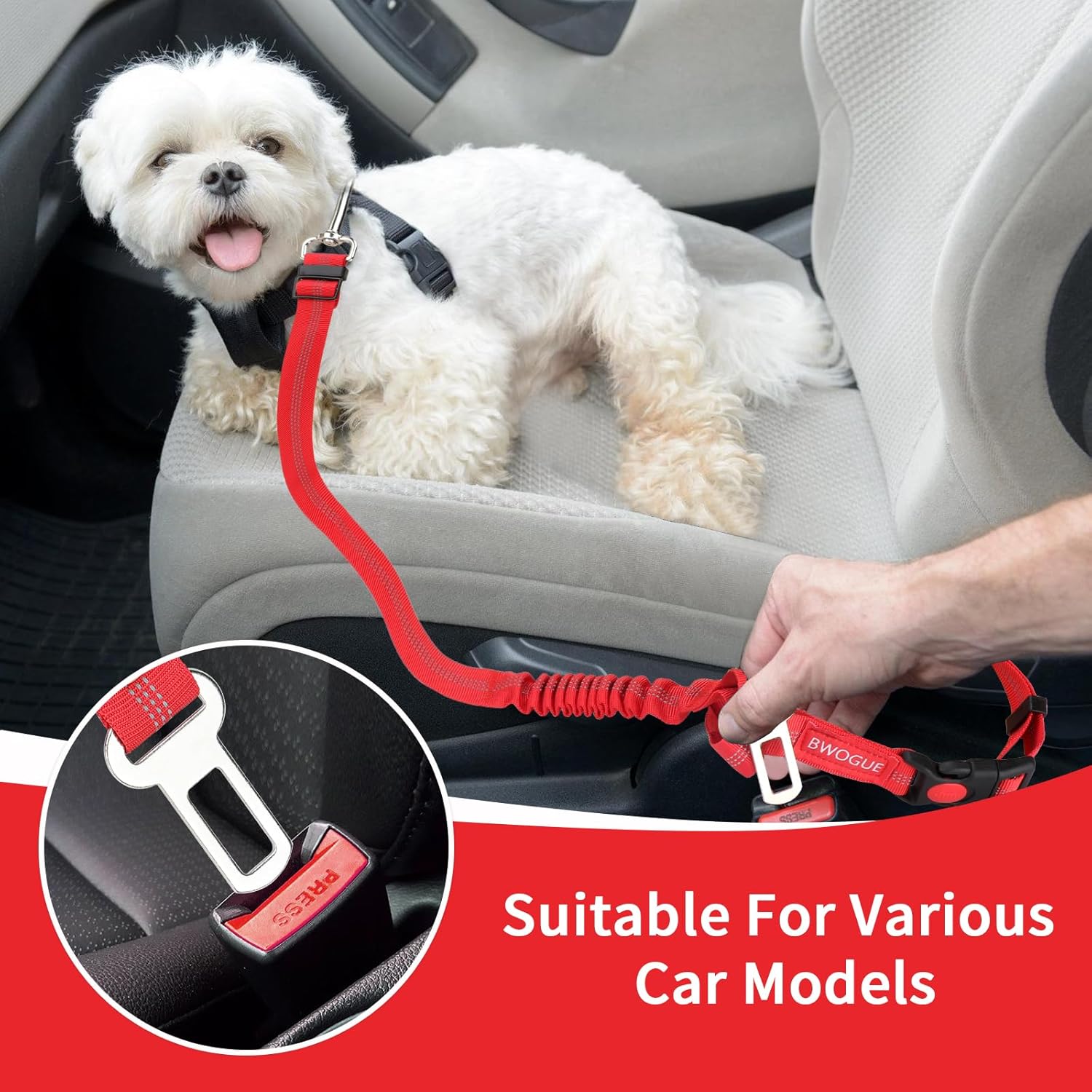 BWOGUE 2 Piece Dog Seat Belt for Car with Elastic Bungee Buffer Safety Seatbelt Car Headrest Restraint Wear Adjustable Metal Buckle Harness in Vehicle Travel for Pet