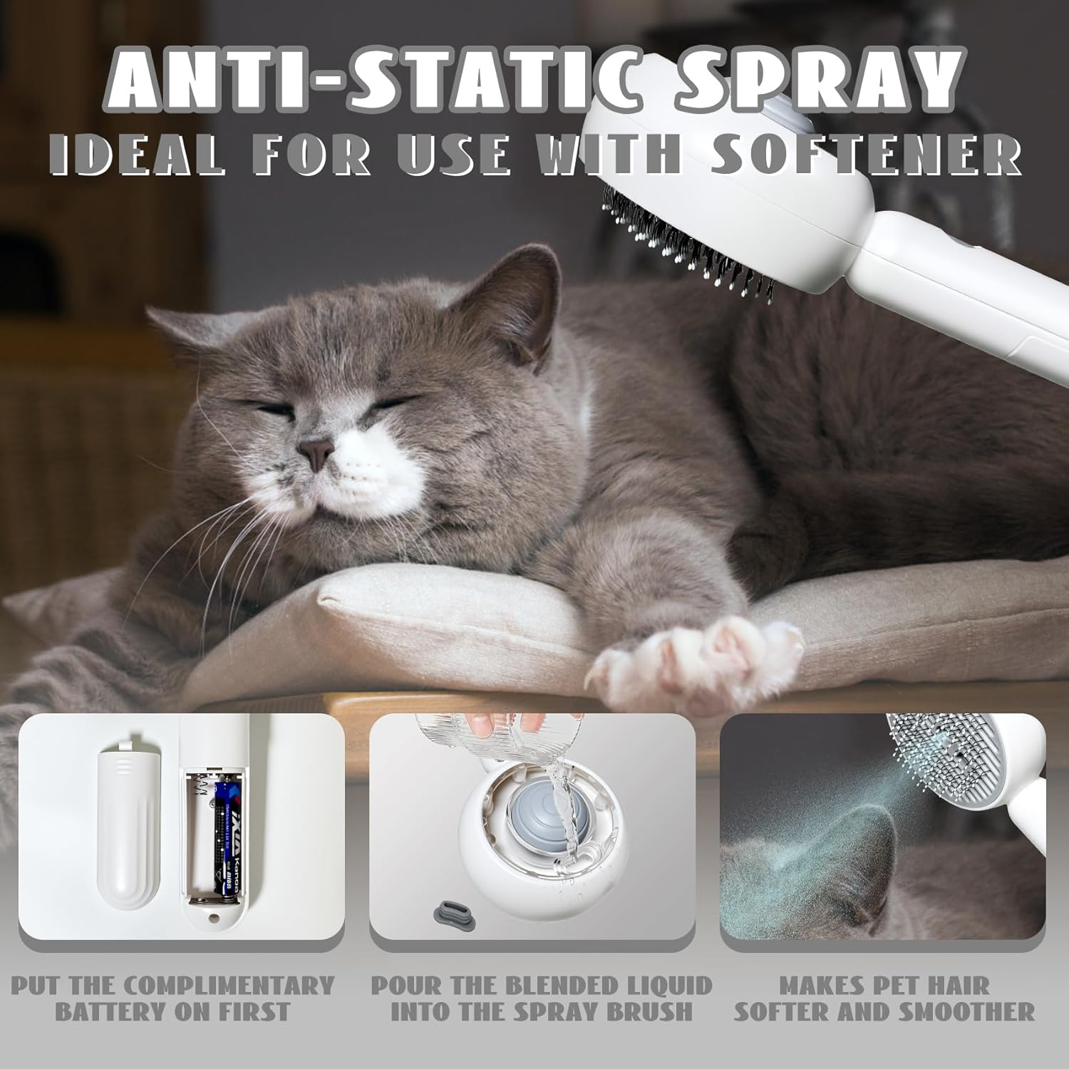 3-in-1 Steam Brush for Cats & Dogs – Hair Removal Comb with One-Click Release & Water Spray – Grooming Brush for Shedding, Long/Short Hair (white brushs-grey)