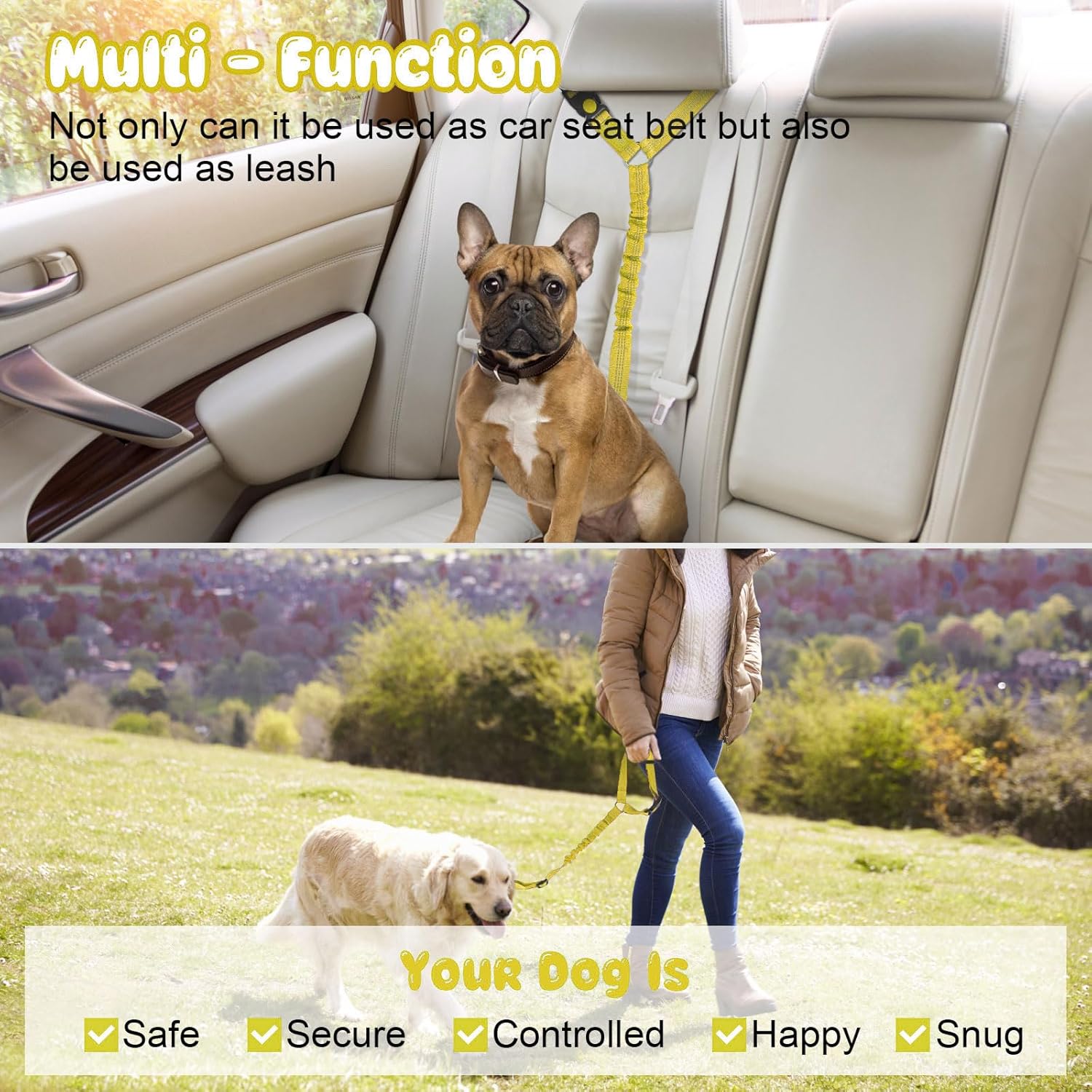 • PRACTICABILITY: Our durable leash Not only can use for car ,but also can be converted to a traditional hand-held leash whenever you need. In addition,It is easy to have the pets secured to a tree or other strong post to keep pets safe when you need.