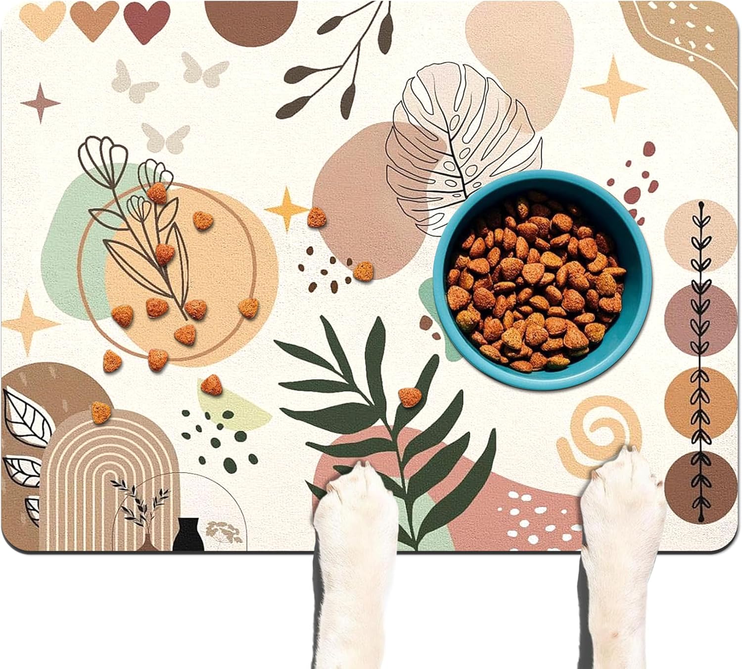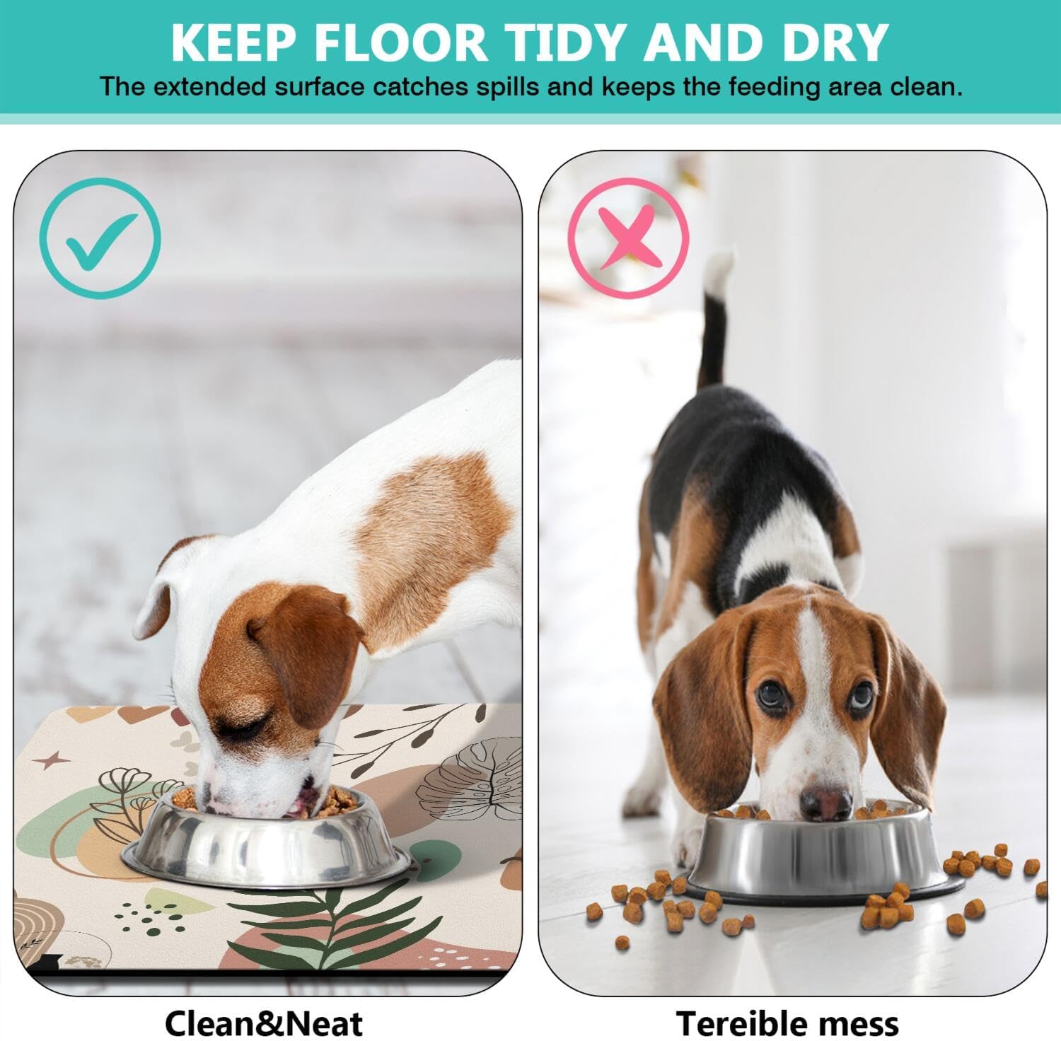 • Dog Food Mat & Cat Food Mat - Our premium pet food mat provides the perfect solution for messy drinkers/eaters! This extra-large pet feeding mat catches all spills from dog bowl mat and water dishes, keeping your floors spotless.