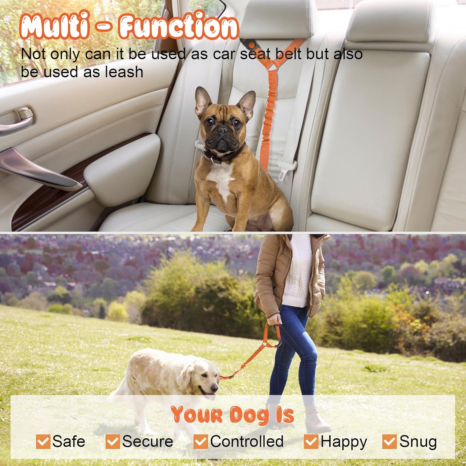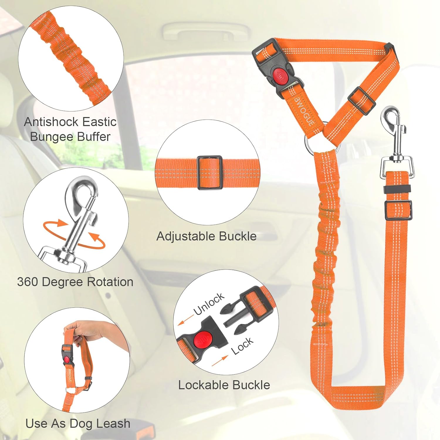 • PRACTICABILITY: Our durable leash Not only can use for car ,but also can be converted to a traditional hand-held leash whenever you need. In addition,It is easy to have the pets secured to a tree or other strong post to keep pets safe when you need.