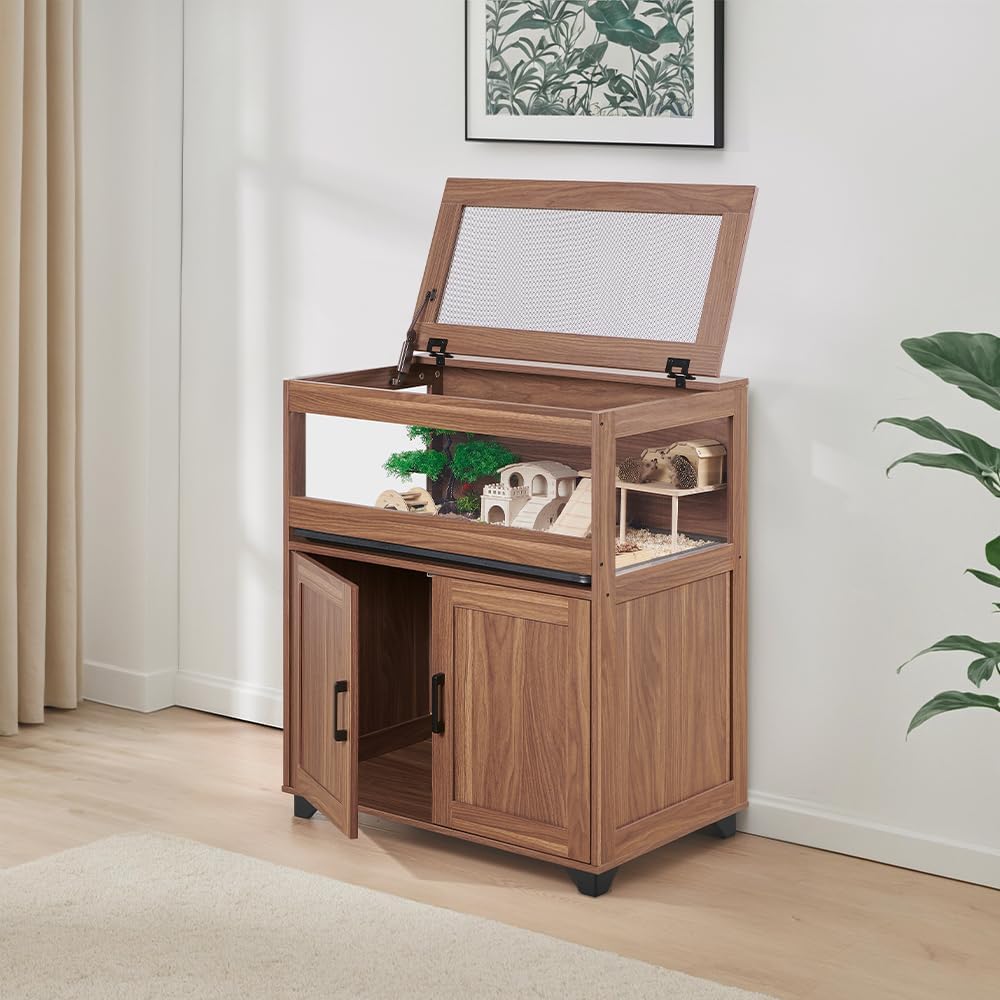 unipaws Hedgehog Cage with Storage Cabinet, Hamster Cage for Rat and Guinea Pigs, Clear Transparent PVC Visual Small Animal Cage with Tray, Hamster Enclosure, Walnut