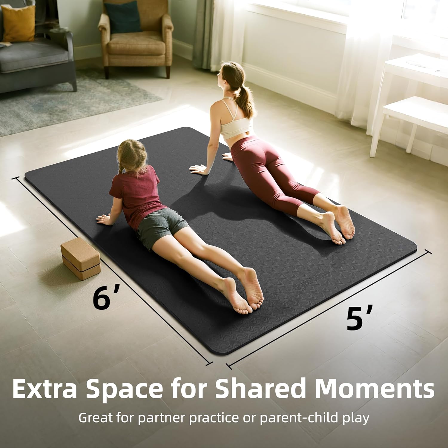 • [Extra Wide 78"x57" – Built for Two. Made for More] Share your space or stretch out soloβ€”this oversized mat is ideal for couples, tall users, or full-body workouts. Nearly twice the width of standard mats, it gives you room to move fully during yoga, pilates, or family fitness sessions.