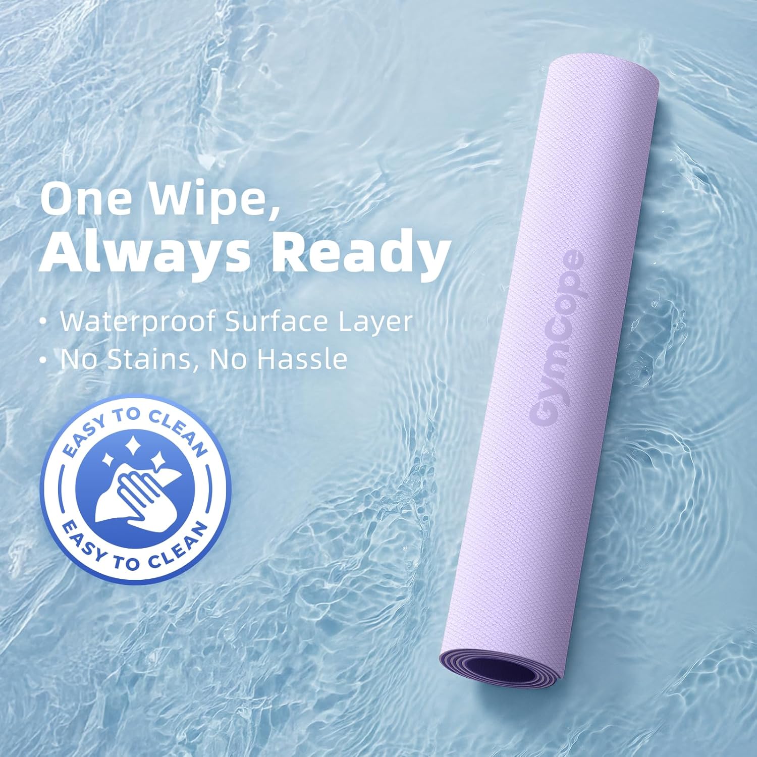 • [Waterproof & Easy to Clean – Wipes in Seconds] Closed-cell TPE resists sweat, moisture, and dirt. Just wipe with a damp cloth β€” no soaking or scrubbing β€” for a fresh, clean mat every session.