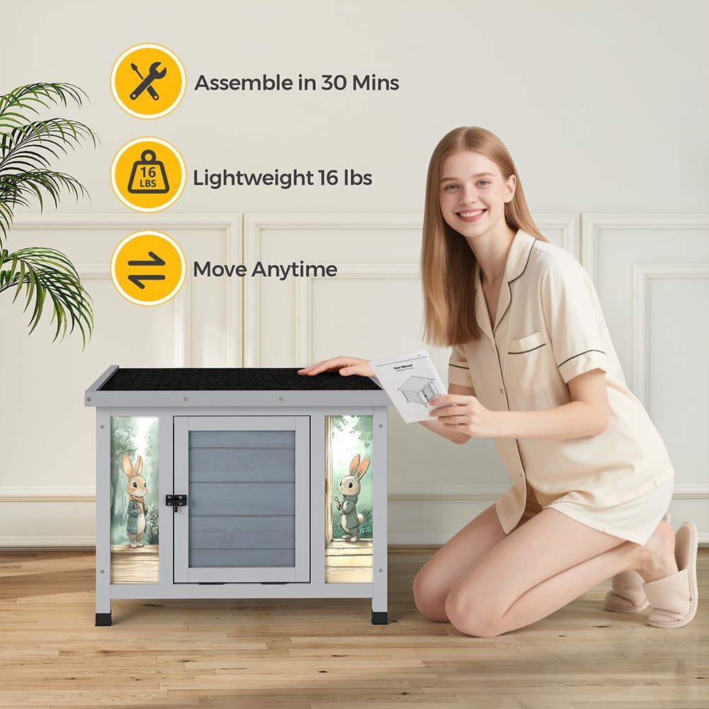 • Engineered Wood Construction​​: Sturdy spruce wood frame with reinforced edges resists warping/swelling; Waterproof asphalt roof provides all-weather durability. Ideal for indoor/outdoor use.