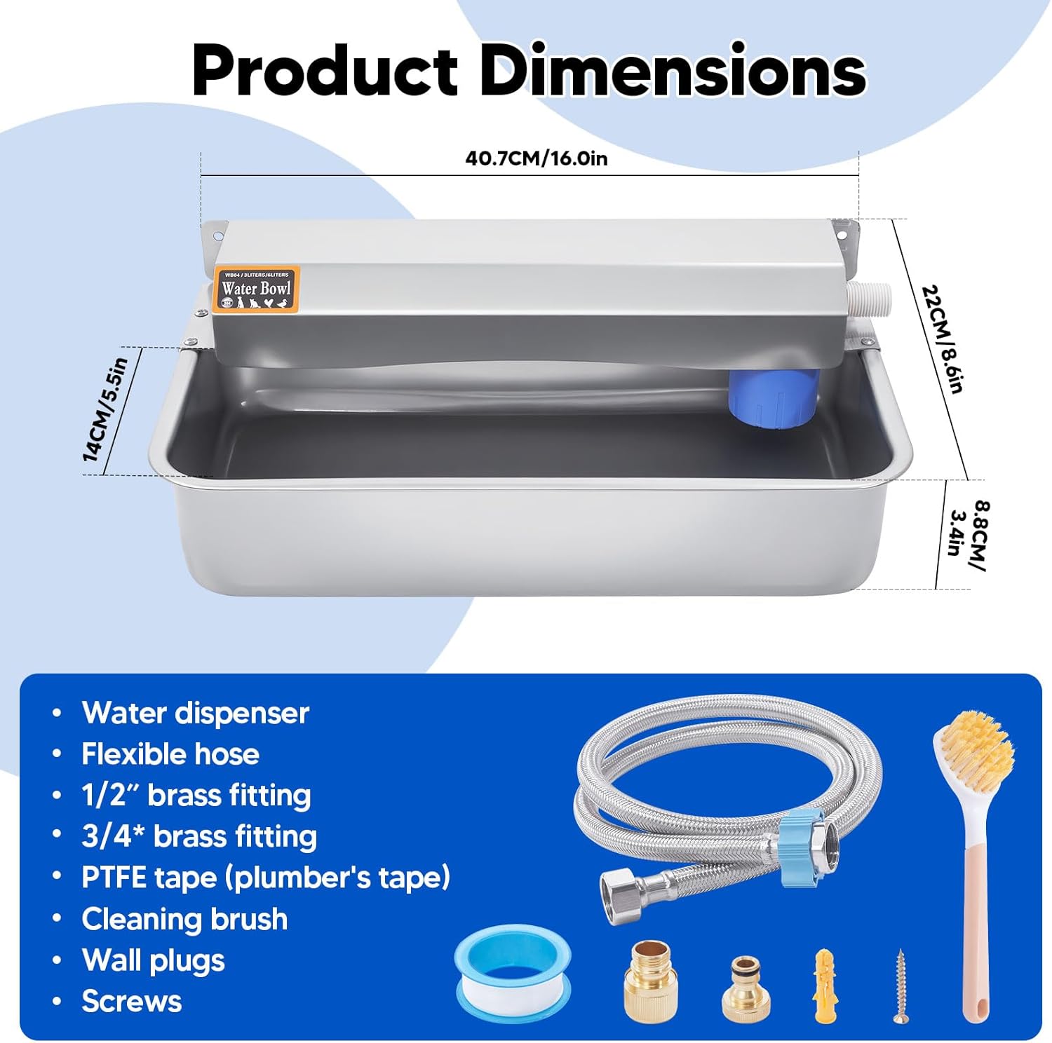 • EASY TO INSTALL:The dog water bowl dispenser comes with a complete set of accessories such as brushes, expansion screws, copper connectors, and detailed instructions. The copper fitting is suitable for connecting 3/4 inch faucets and is easy to install. Tips: If you encounter any obstacles during installation, please feel free to contact us and we will assist you to solve the problem
