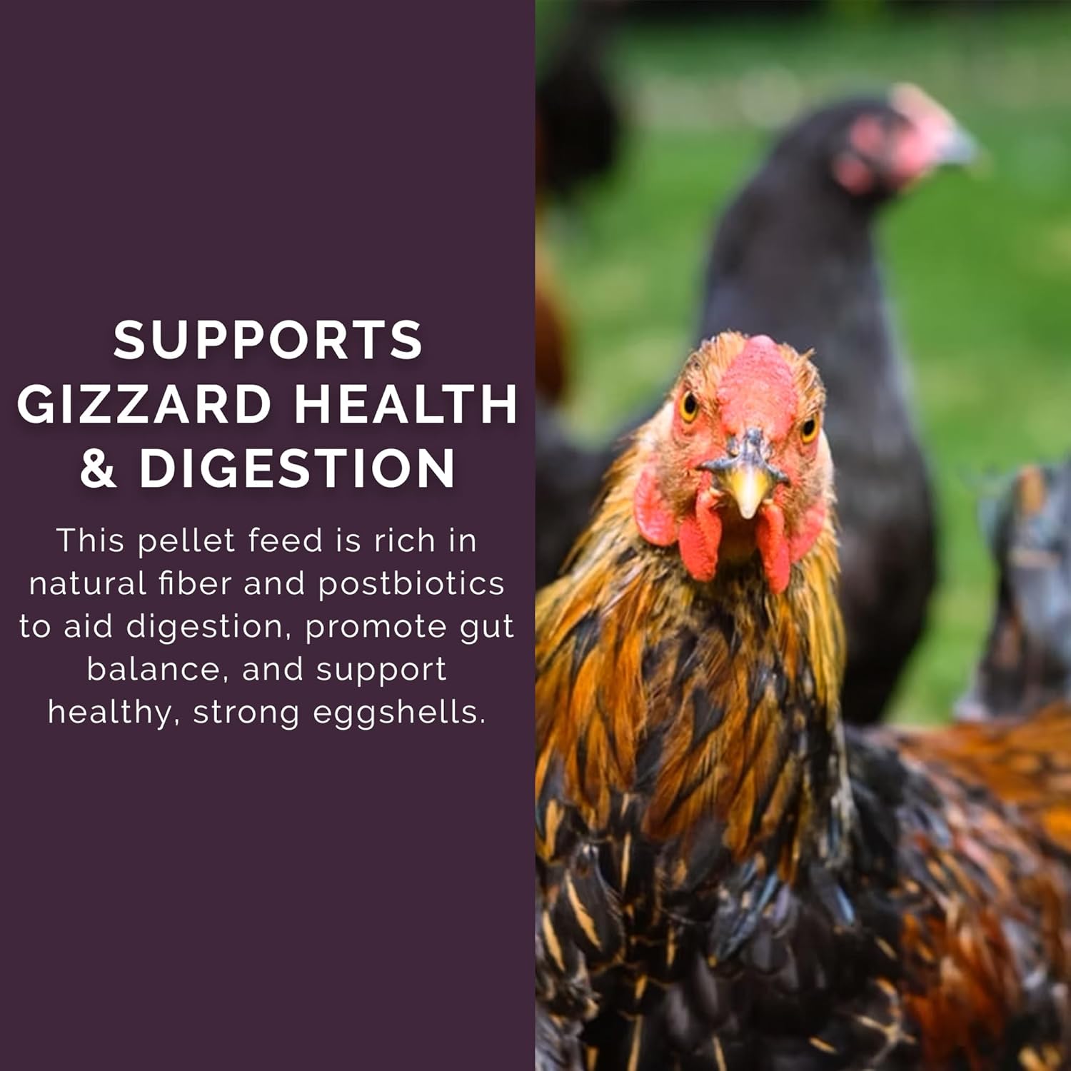 • Supports Gizzard Health & Digestion: This 25-pound bag of pellet feed is rich in natural fiber and beneficial nutrients to aid digestion, promote gut balance, and support healthy, strong eggshells.