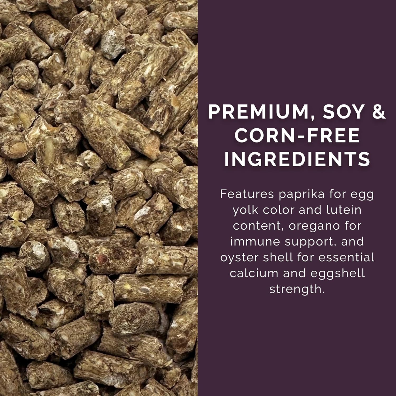 • Premium, Soy & Corn-Free Ingredients: Features paprika for egg yolk color and lutein content, oregano for immune support, and oyster shell for essential calcium and eggshell strength.