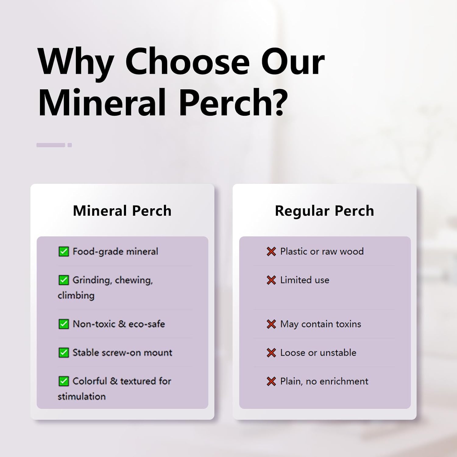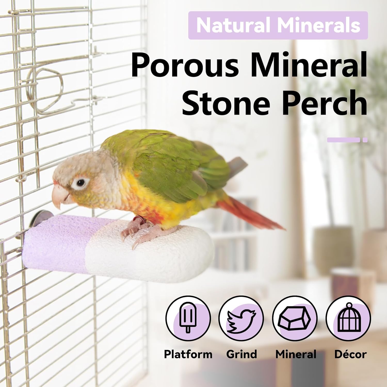 • โœ… 100% Natural & Safe Materials ---- Crafted from 100% porous natural minerals and food-grade coloring, our bird perch toys are completely safe for your feathered friend. Colors wonโ€™t fade even after washing. A trusted choice for parrot cage accessories that prioritize pet safety.