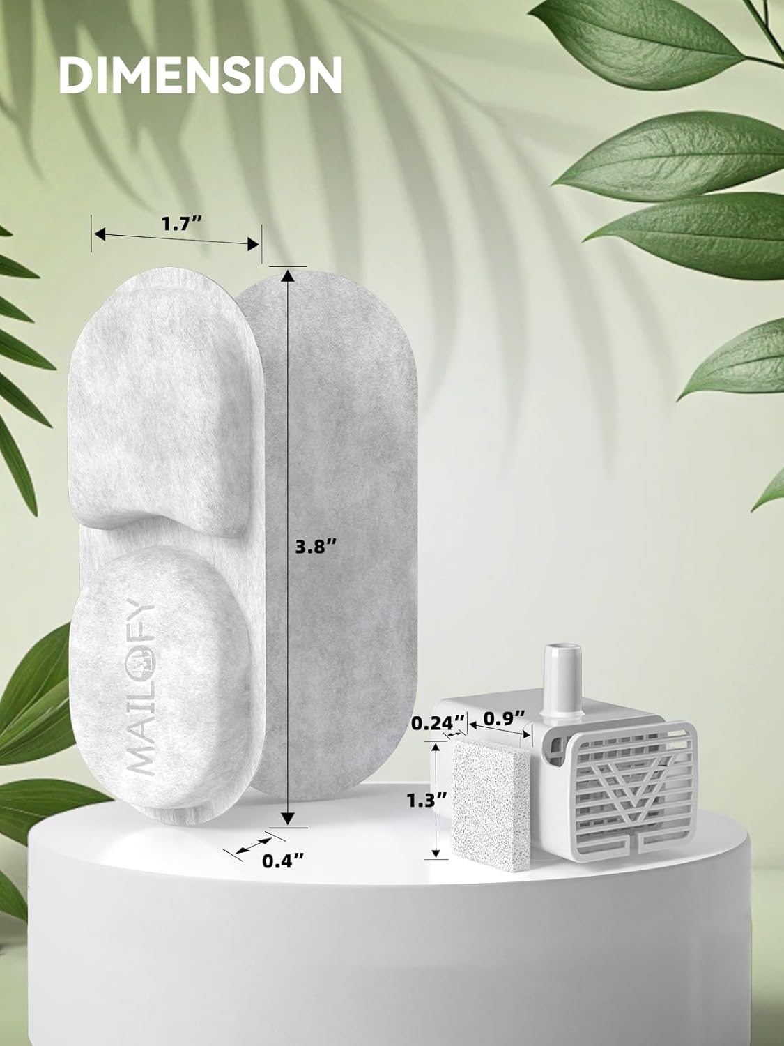 • Compatible: The filters are suitable for MAILOFY DR120 3.7Gal stainless steel dog water fountain & DR070 2.1Gal dog water fountain.