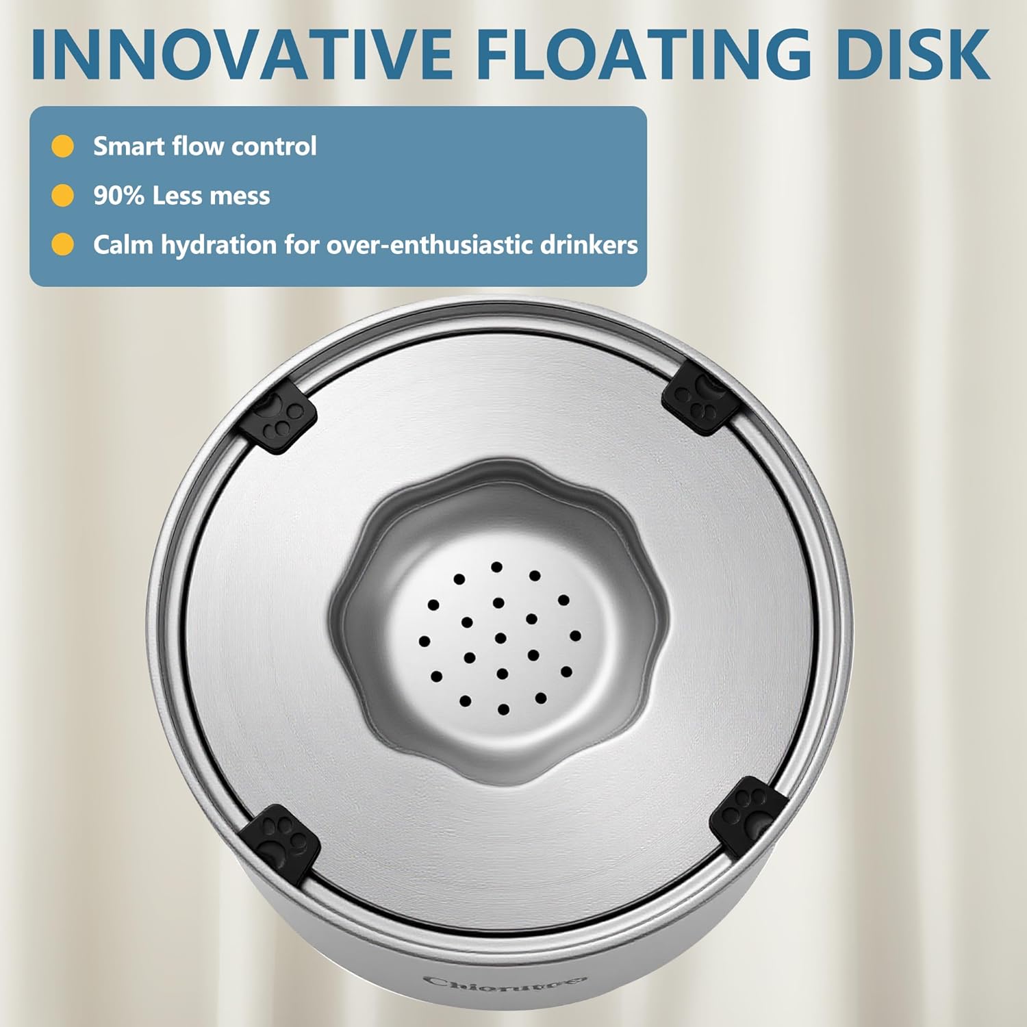 • Spill Proof : The Chioratree dog water bowl features an innovative floating disk design that automatically adjusts the water level to prevent splashing, keeping your space clean and dry at all times