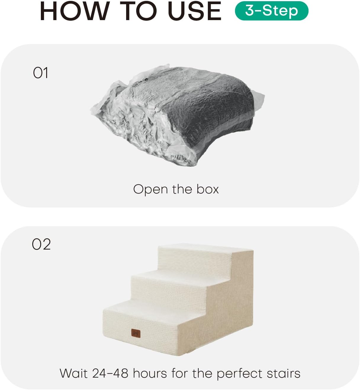 • 【Easy to Clean】: The dog stairs feature a removable, machine washable cover for effortless cleaning. Simply take out the foam core for washing; however, please avoid cleaning the foam and board. After removing from the compression bag, allow 24-48 hours for the foam to fully expand before use for optimal comfort
