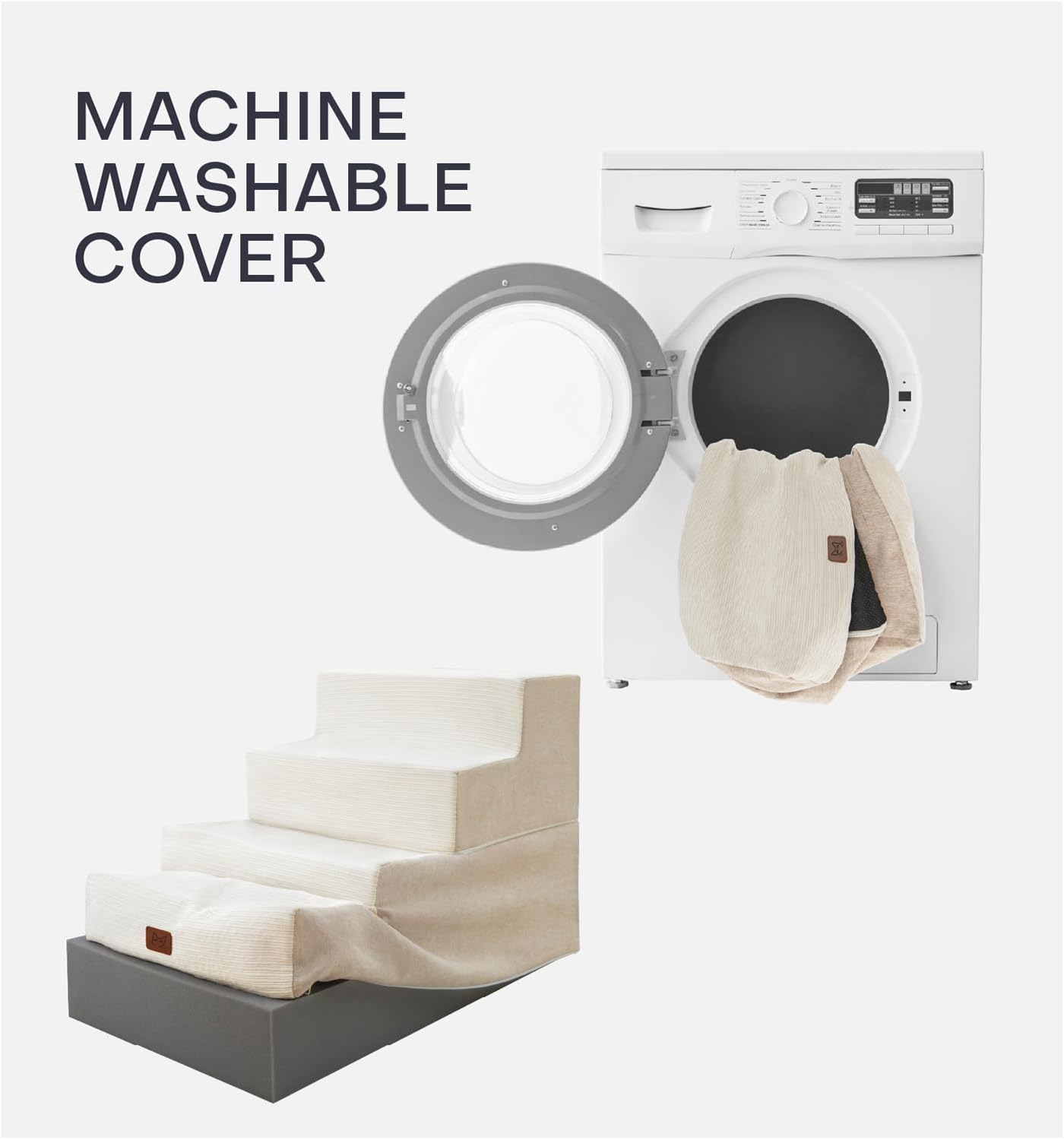 • 【Easy to Clean】: The dog stairs feature a removable, machine washable cover for effortless cleaning. Simply take out the foam core for washing; however, please avoid cleaning the foam and board. After removing from the compression bag, allow 24-48 hours for the foam to fully expand before use for optimal comfort
