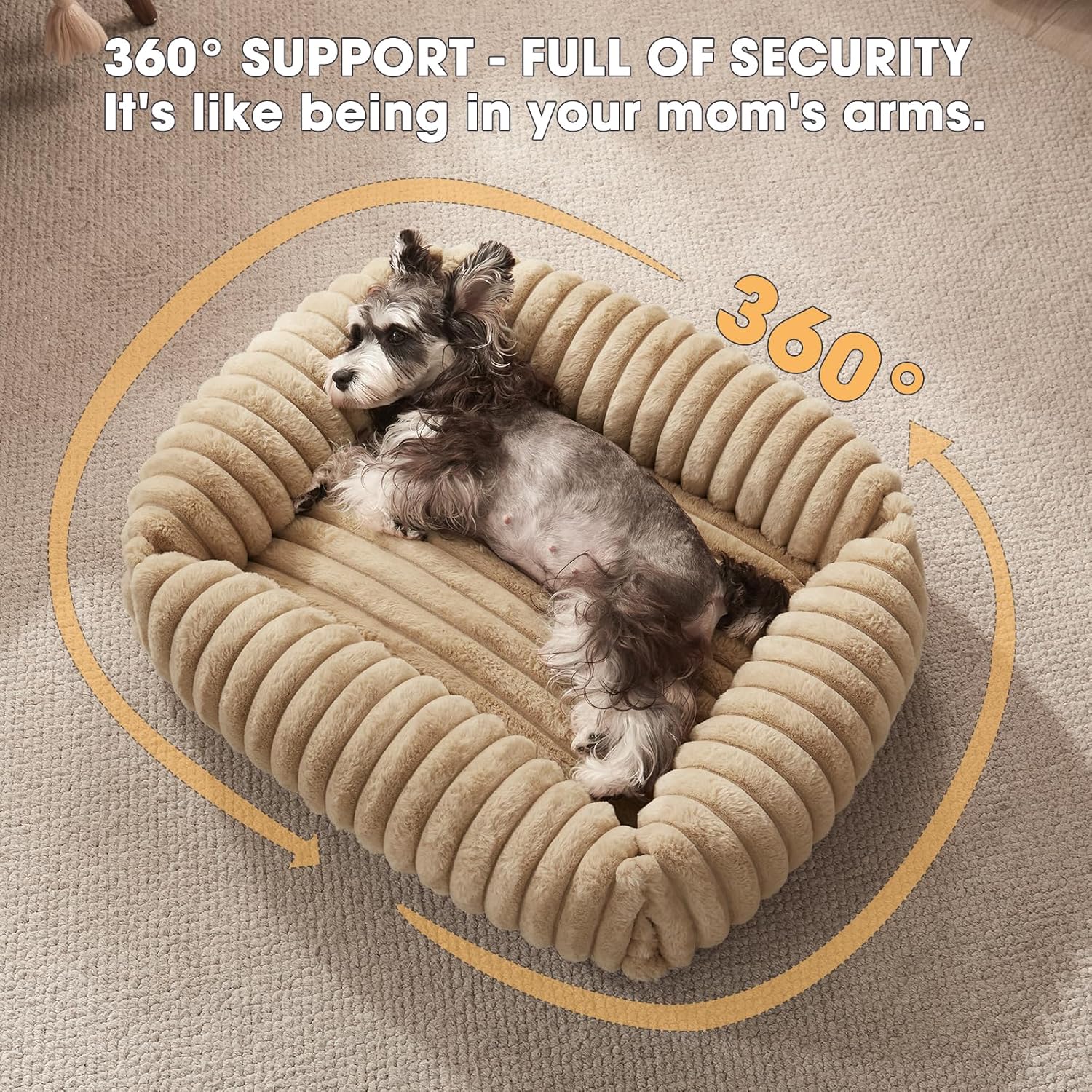 • NECK SUPPORT PILLOW FOR DEEPER DOG SLEEPING: The raised sides of dog beds for small dogs provide a cozy nook for your petโ€™s head and neck, promoting peaceful sleep. Designed with 360ยฐ support, full of security, this orthopedic dog bed creates a secure, enclosed space, perfect for dogs who love to curl up or lean against something. The small dog bed's 2:1 mix of chopped foam and polyester fiber offers perfect support and fluffy comfort for pets.