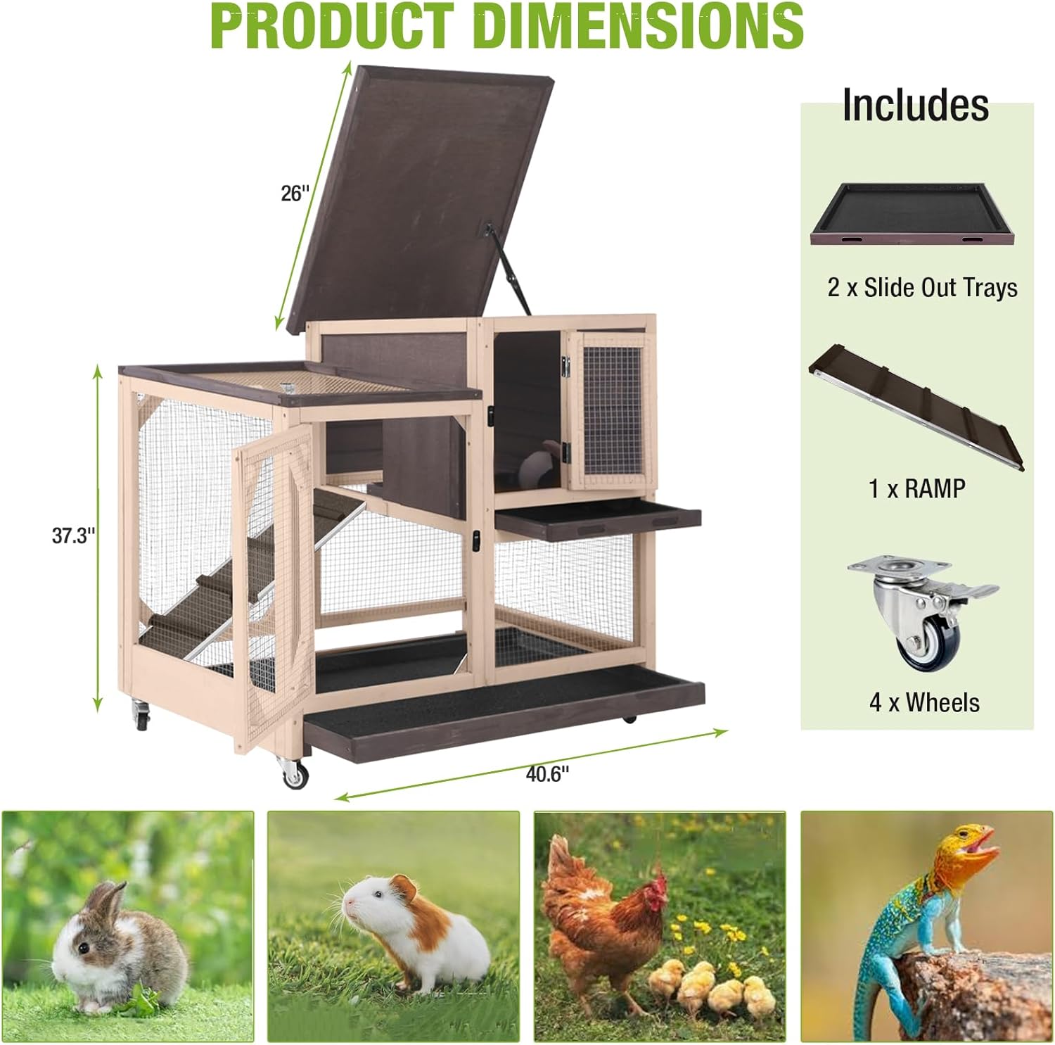 • Strong & Long-Lasting Build: Made with natural wood and heavy-duty metal framing, this hutch holds up against chewing and outdoor weather for reliable, long-term use. Great for energetic rabbits, guinea pigs, and small pets.