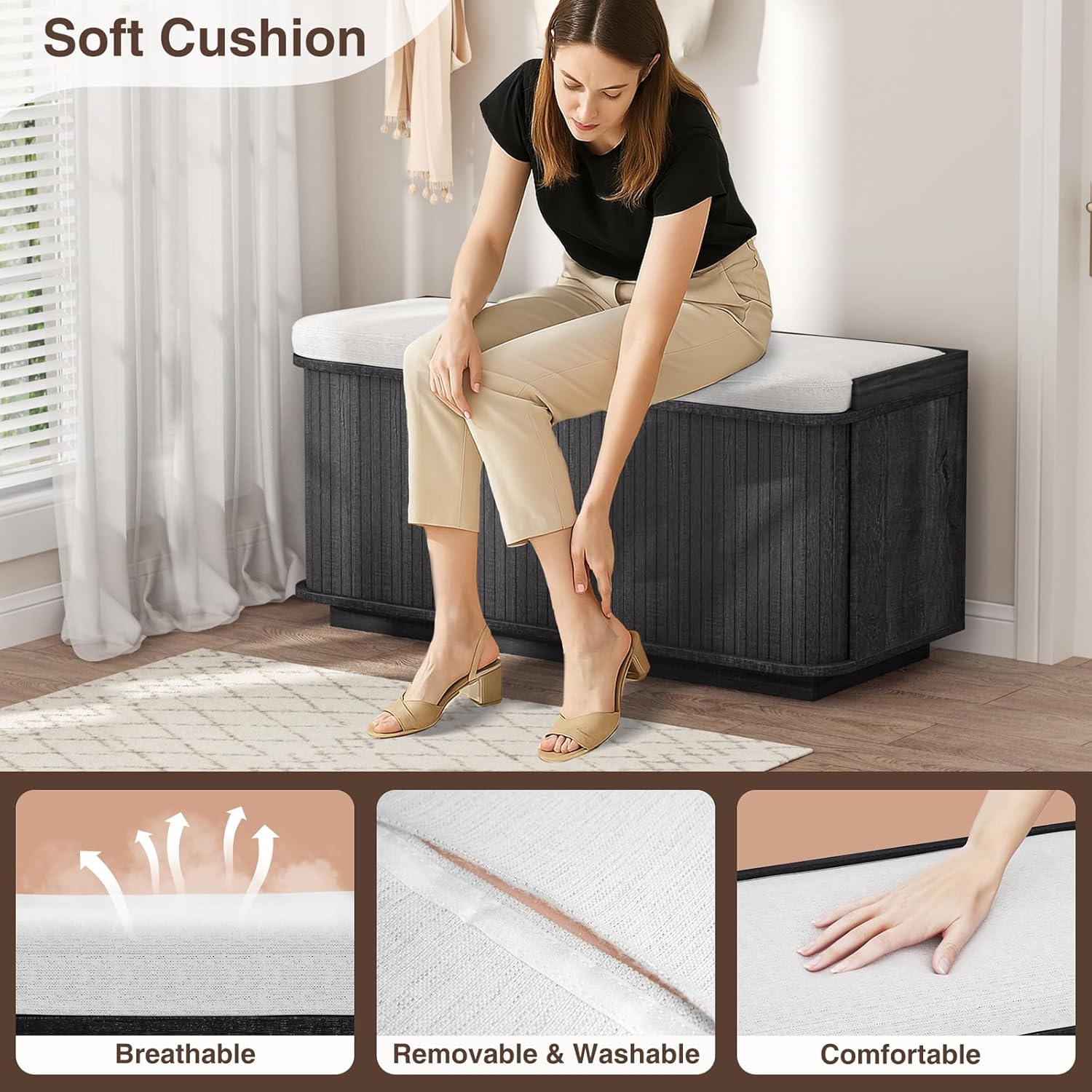 • Padded Cushion: Our benches with storage have 5 cm thick highly resilient foam upholstery with removable and washable linen covers for comfort and convenience when changing shoes