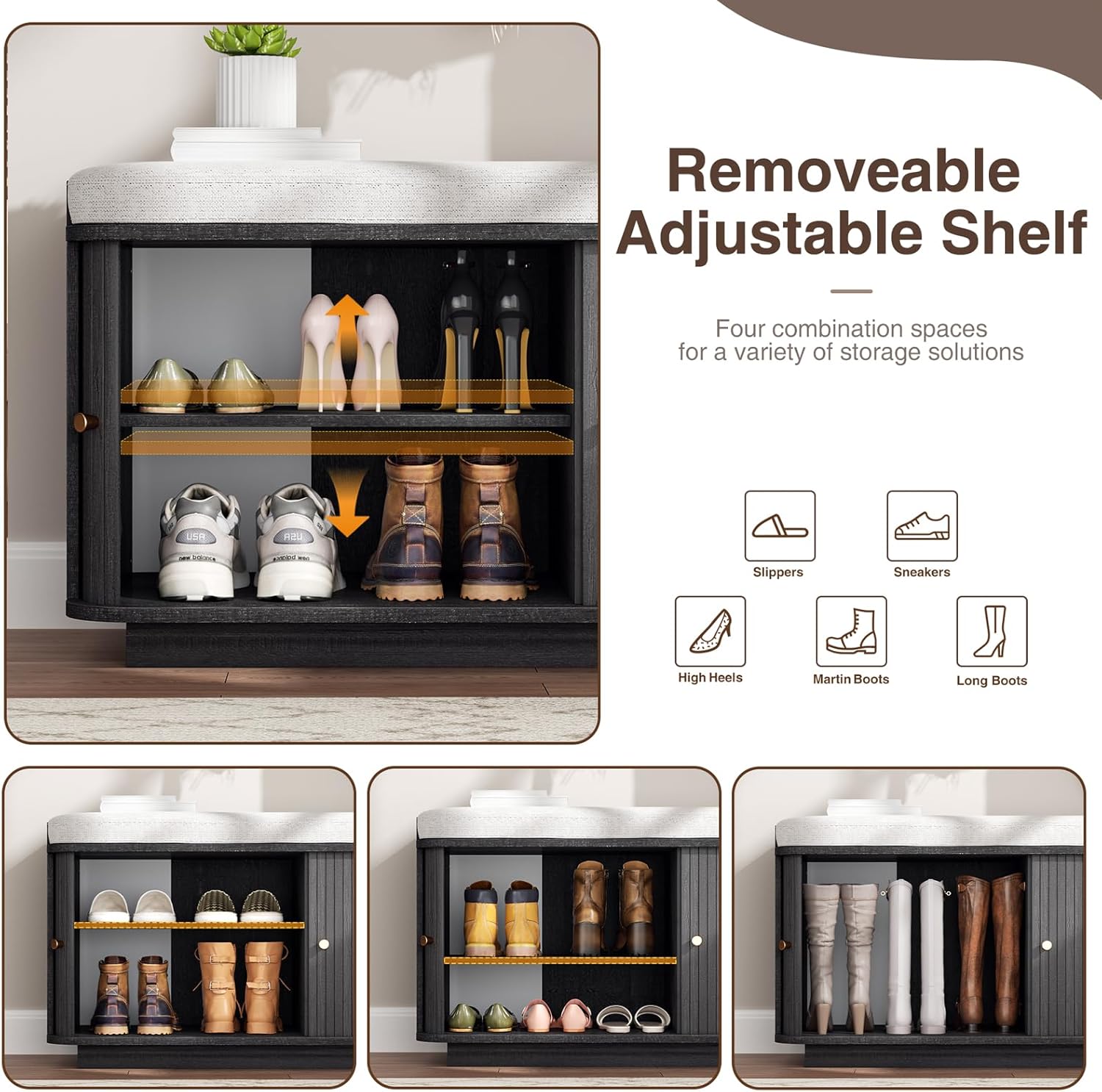 • Space-saving Sliding Door Design: When you sit on this entry way bench to change your shoes, the sliding door allows you to open and close it more conveniently to pick up and place your items, while keeping them away from dust and pets