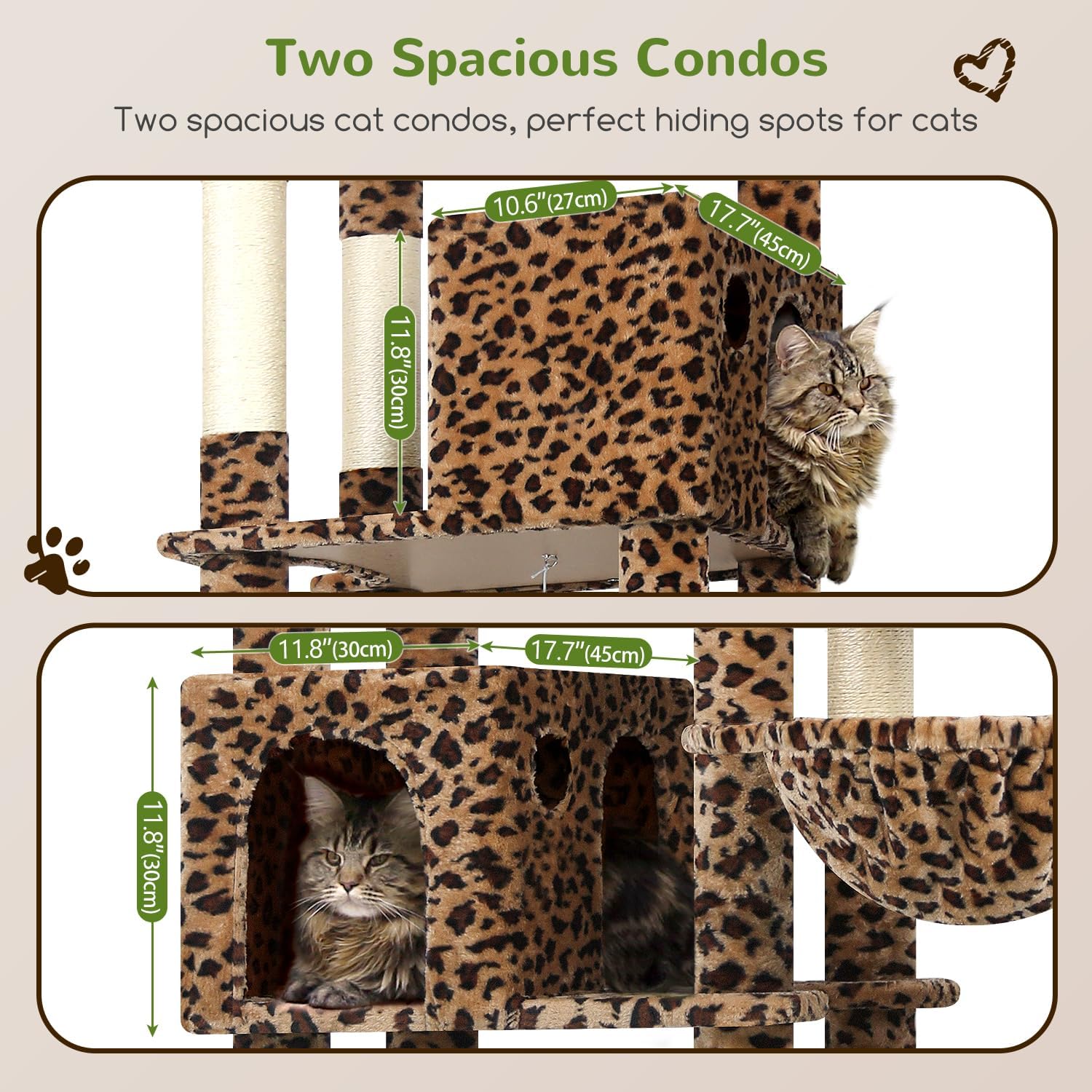 • SPACIOUS CAT CONDOS: This cat tower for indoor cats with two spacious enlarged cat condos provides privacy for big cats, suitable for multiple large felines to rest or play