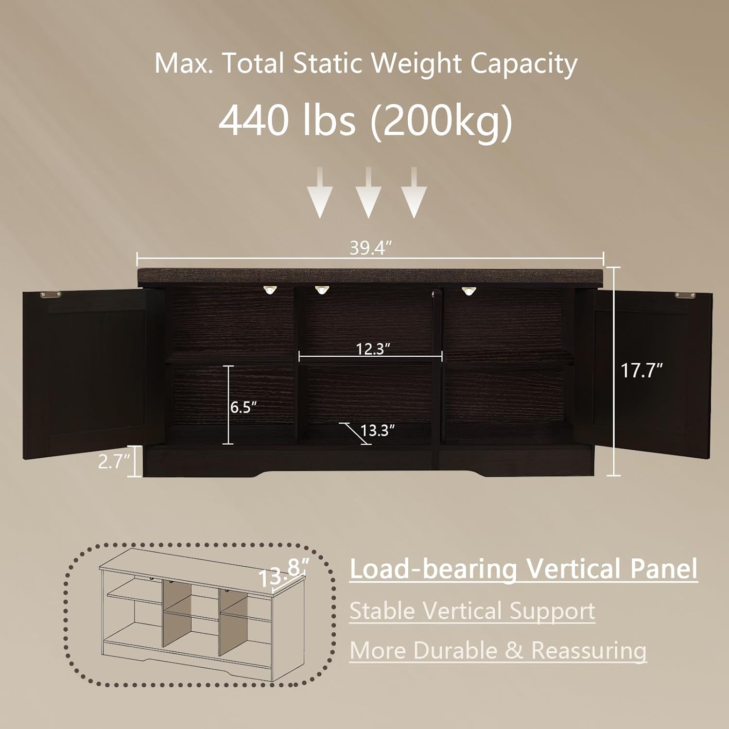 • Product Dimensions : 13.8"D x 39.4"W x 17.7"H