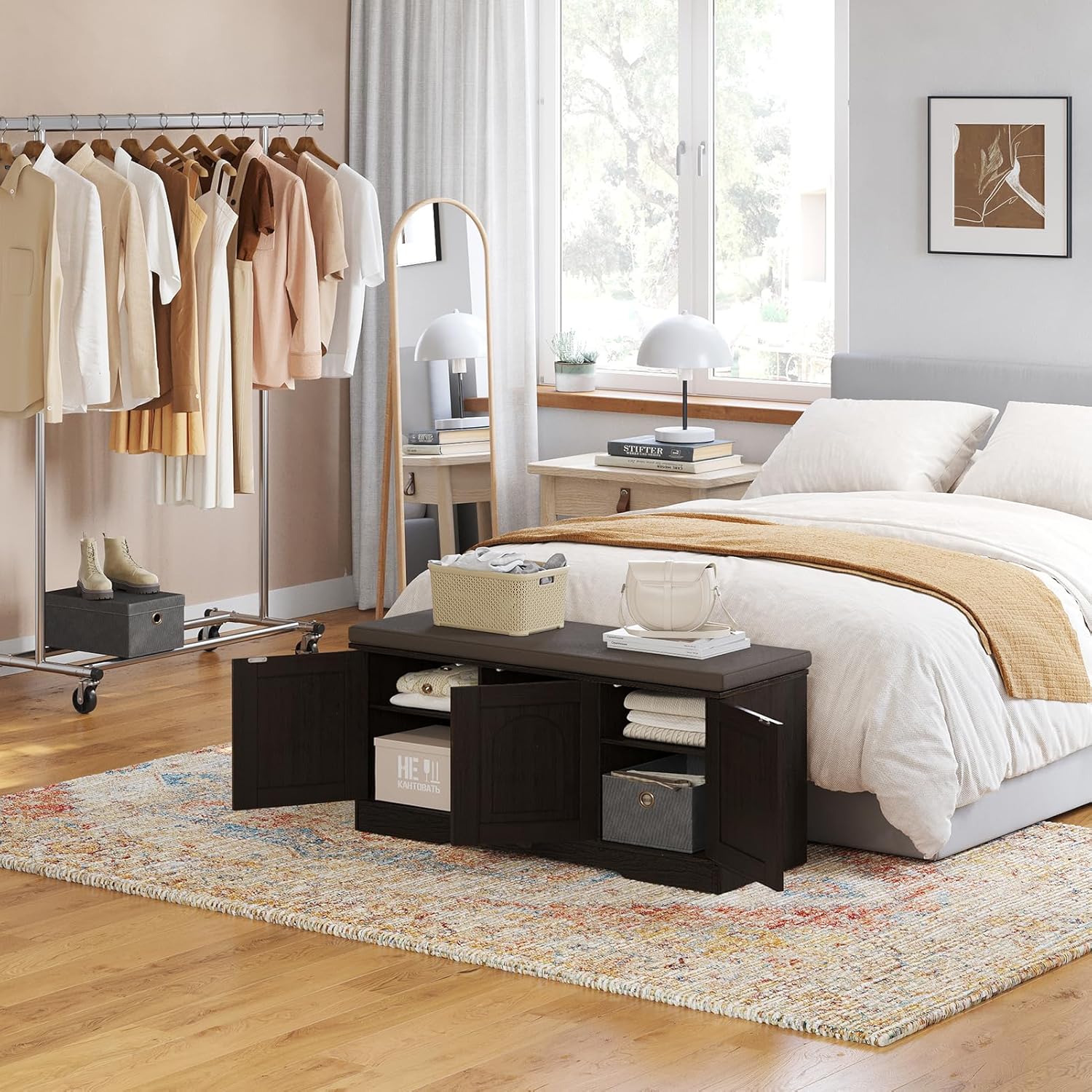 • 【Effortless Push-to-open Door】Feature a fully enclosed design with a press-to-open mechanism, keeping shoes clean and tidy while avoiding accidental bumps against door handles during use. Reasonable height and soft cushion let you change shoes by sitting on the bench more comfortable without bending down or squatting