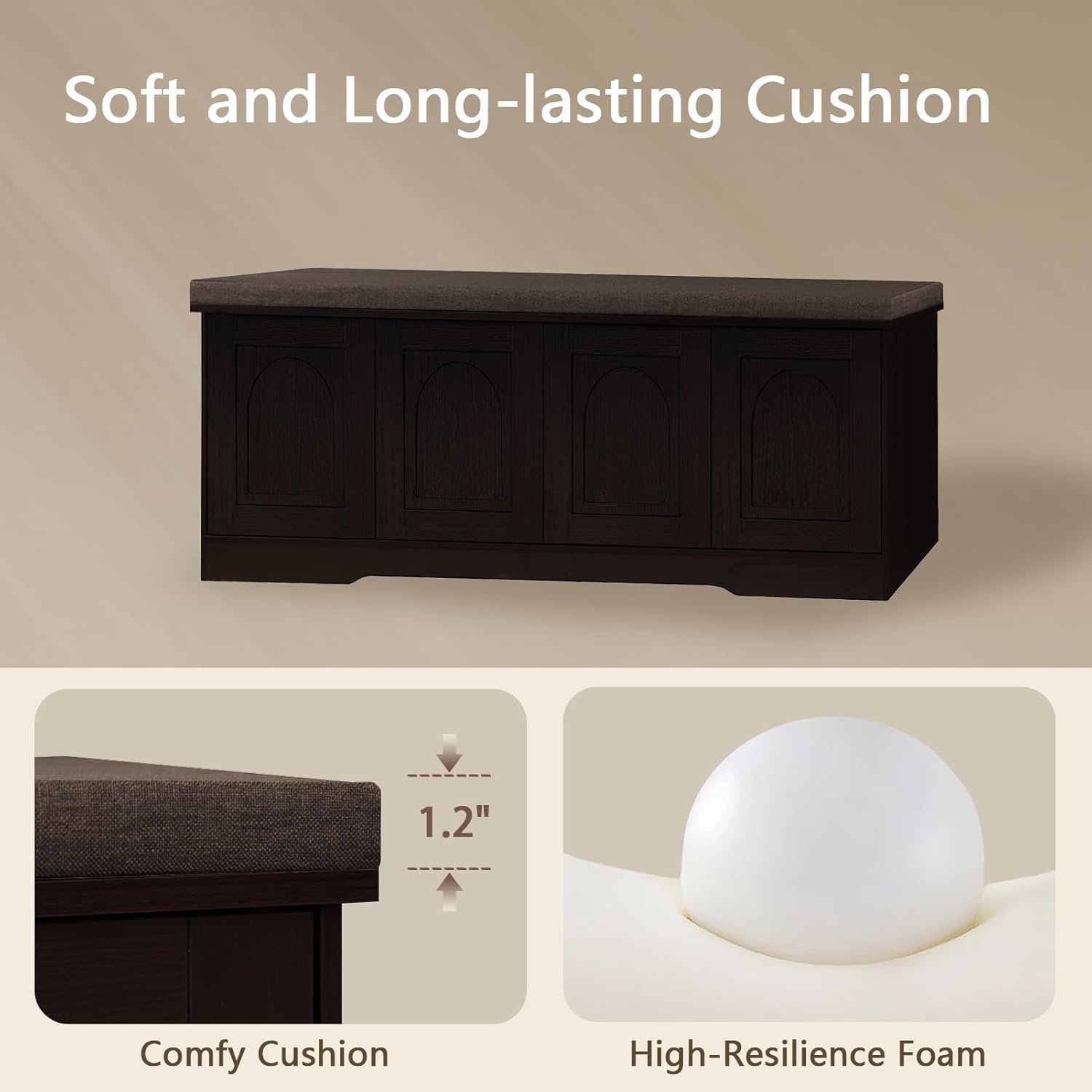DINZI LVJ Shoe Bench, Entryway Storage Bench with Doors, Cushion, 2-Tier Shoe Rack with 8-Cubby, 47.2”L x 13.8”W Shoe Organizer Cabinet, Adjustable Shelf, Living Room, Bedroom, Espresso