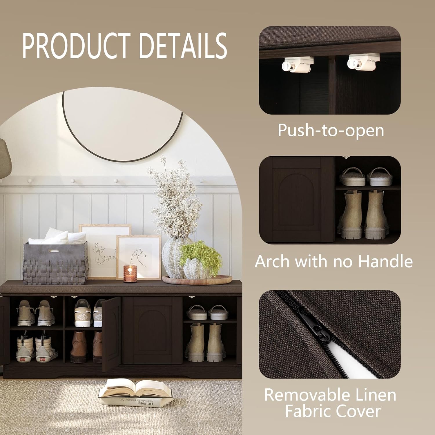 • 【Effortless Push-to-open Door】Feature a fully enclosed design with a press-to-open mechanism, keeping shoes clean and tidy while avoiding accidental bumps against door handles during use. Reasonable height and soft cushion let you change shoes by sitting on the bench more comfortable without bending down or squatting