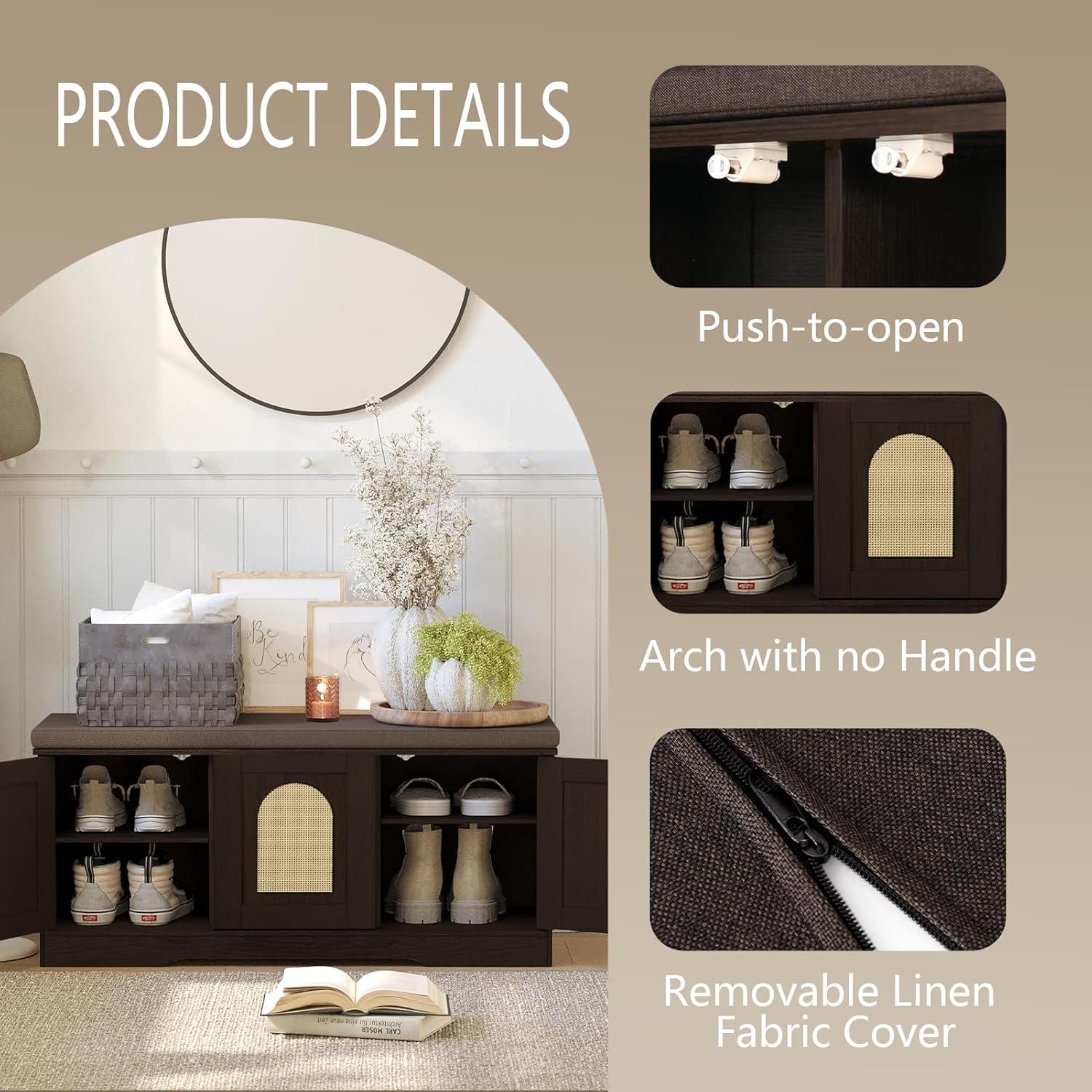 • 【Effortless Push-to-open Door】Feature a fully enclosed design with a press-to-open mechanism, keeping shoes clean and tidy while avoiding accidental bumps against door handles during use. Reasonable height and soft cushion let you change shoes by sitting on the bench more comfortable without bending down or squatting
