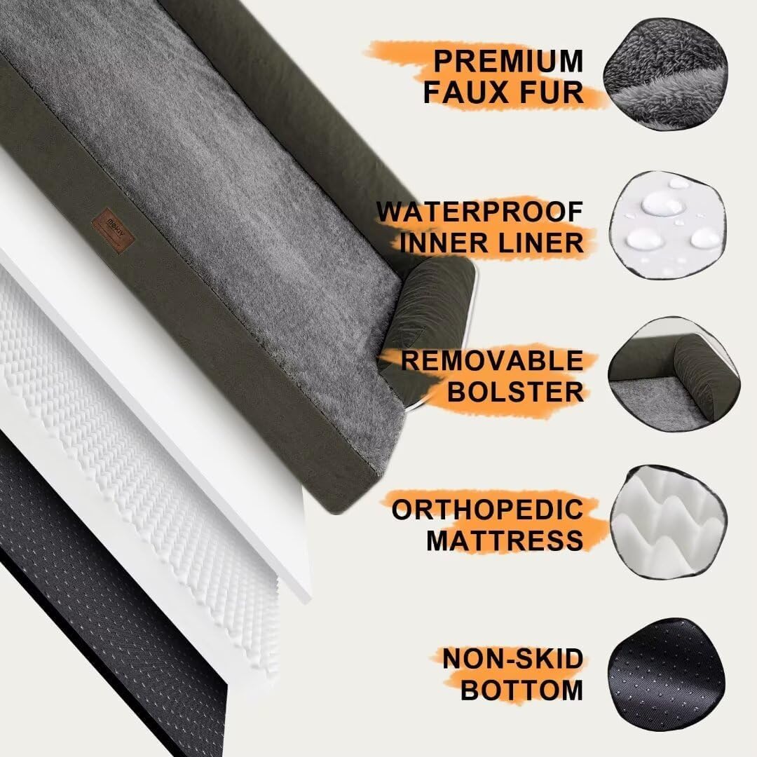 • Orthopedic Support: Mekiy orthopedic dog bed 3.5 inches bolster design can effectively soothes the pet's muscles; offering your pet a variety of cozy positions to snuggle; The cushioned bolster shape is fully filled to support your pet’s head and neck for a more restful sleep