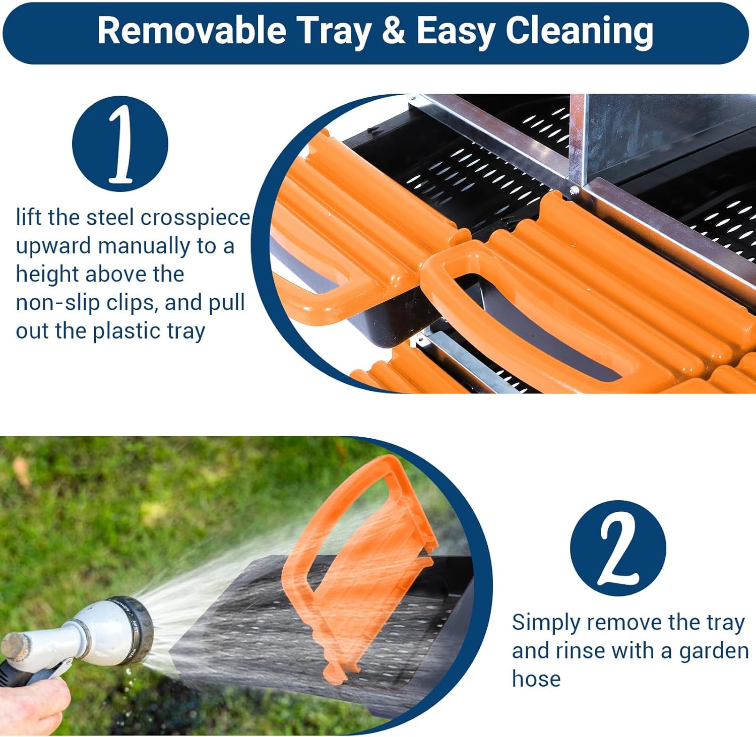 • DURABLE CONSTRUCTION: Built to last, our nesting boxes are made from rugged galvanized steel for both the roof and sides. This robust material, combined with ventilation holes, ensures a cool and dry environment for your hens. The removable, rust-proof plastic trays make maintenance and cleaning simple and efficient.